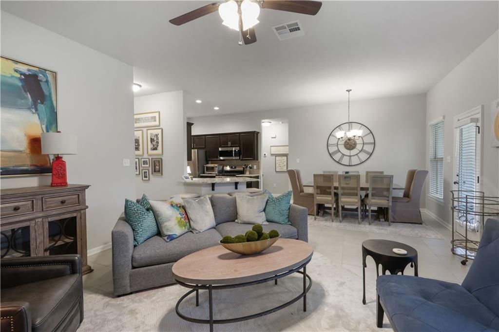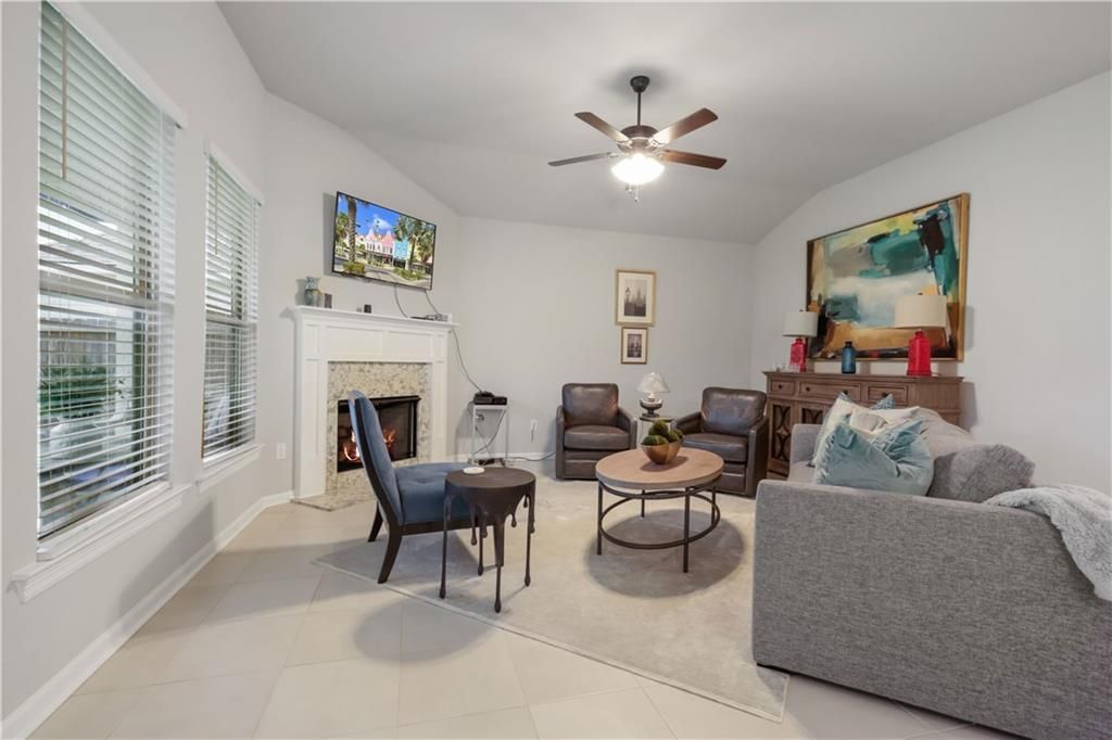 Step into this beautifully maintained 3bedroom 2bath home offering an immaculate interior and a desirable split floor plan for added privacy. Featuring tile flooring throughout (no carpet anywhere), this home combines style with easy maintenance. The spacious living area flows seamlessly into a modern kitchen complete with elegant quartz countertops and ample cabinetry with plenty of workspace for cooking and entertaining. The primary suite is a true retreat, highlighted by a luxurious garden soaking tub, separate shower and generous walk-in closet. Additional bedrooms are well-sized and thoughtfully positioned on the opposite side of the home. Enjoy peace of mind with a built-in security system and energy efficiency from the tankless hot water heater. Outside, custom gutters ad both function and curb appeal while the backyard offers serene pond views. This move-in-ready home blends comfort, quality and a tranquil setting - ready of its next owner to enjoy and build memories.