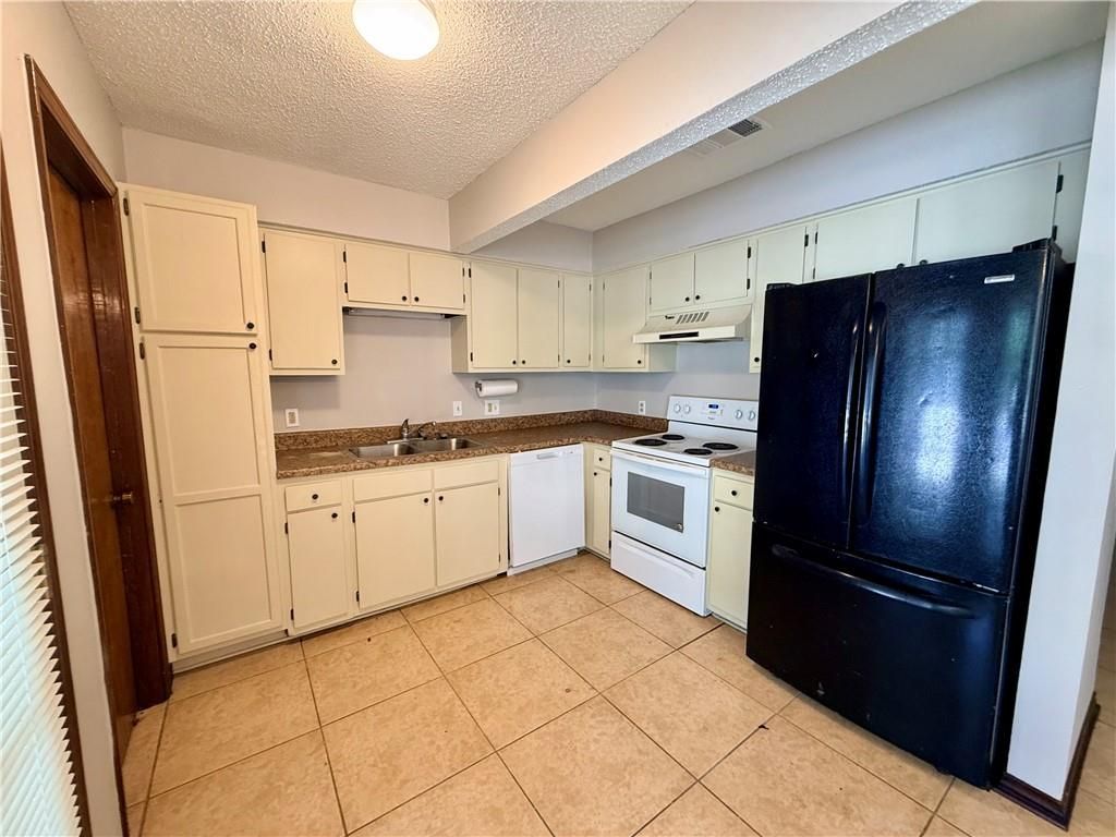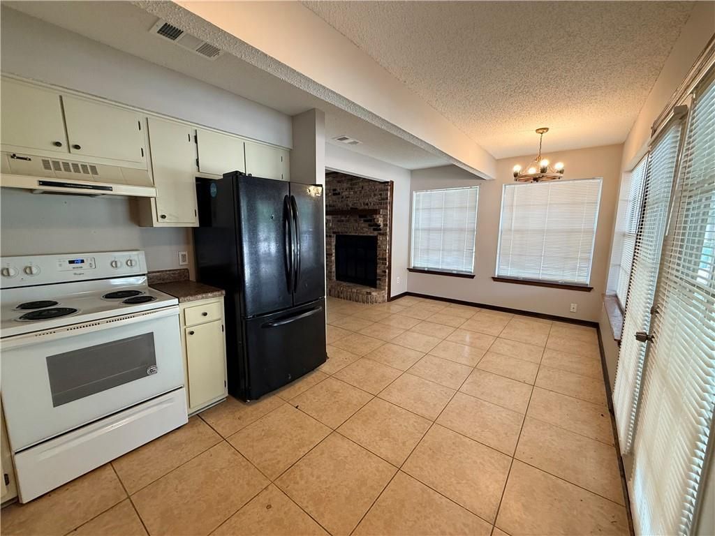 Centrally located corner-lot townhouse now available! This home features a spacious living room with a cozy brick fireplace, perfect for relaxing or entertaining. The kitchen comes equipped with a dishwasher, stove, and refrigerator, along with a separate dining area and a dedicated laundry room just off the kitchen for added convenience. The functional floor plan offers one bedroom and a full bath on the main level, while the private primary suite is located upstairs with its own full bathroom. Upstairs is carpeted for comfort, while the downstairs features durable ceramic tile flooring. Enjoy outdoor living with a covered back patio and a locked storage closet for additional space. Lawn maintenance is included, providing low-maintenance living. Additional terms: one-year lease required, no pets, and vouchers are not accepted.