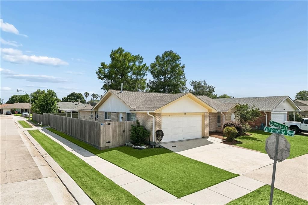 Welcome home to this meticulously maintained move-in ready 3-bedroom, 2-bath home featuring an open living and kitchen concept great for entertaining. Conveniently located in the well-established Grandlake Estates subdivision, this home has many features that are sure to impress. Featuring beautiful Maplewood kitchen cabinets, granite countertops, stainless appliances, wood flooring, and a spacious floor plan, this property has been thoughtfully updated with new underground plumbing, a 2024 HVAC system, and a new water heater. Enjoy fresh landscaping on a large corner lot with rear yard vehicle access, covered parking, and plenty of outdoor space great for your next Boil or BBQ. Located close Ochsner Hospital, shopping, restaurants, etc. this move-in ready home combines modern updates with convenience and charm. Come home and start making those lasting memories!