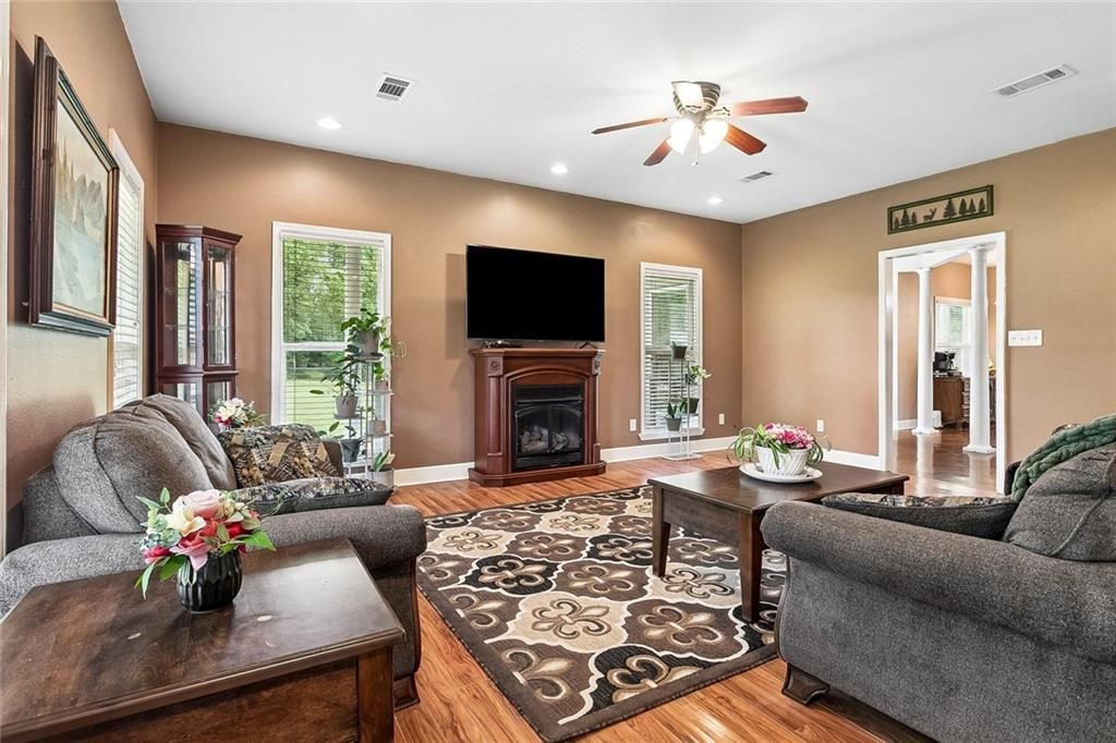 Welcome to your private country retreat?where space, function, and comfort come together on 6.5 beautiful acres in a quiet, peaceful, and family-friendly setting. Asphalt drive leading into this exceptional 5-bedroom, 3.5-bath home offers the perfect blend of refined interior features and fully equipped outdoor amenities for both everyday living and rural lifestyle enjoyment. Inside, you'll find a thoughtfully designed home featuring custom cabinetry throughout, along with custom chair rail and baseboards adding a polished touch to the downstairs living spaces. The downstairs bedroom and full bath are fully ADA-compliant, offering accessibility without compromising style. All interior walls are insulated for enhanced energy efficiency and sound control. The spacious primary suite is a true retreat, complete with his-and-her oversized walk-in closets. Enjoy modern convenience with an on-demand hot water system, while upstairs offers even more versatility with a large bonus/multifunctional room, a generous attic, and a hidden storage area spanning the entire front of the home?great for keeping things tucked away but easily accessible. Step outside and experience everything this property has to offer. A mix of open pasture and wooded areas provides the ideal setting for livestock, recreation, or simply enjoying nature. A creek borders the east side of the property, adding to the peaceful, scenic backdrop. For those needing workspace or additional living potential, the impressive 30x50 fully insulated shop is built with extra-duty footings and includes: Plumbing for a future apartment setup, Washer and dryer hookups, Full bathroom, Large water heater, Propane connections for a stove and space heater Equestrian enthusiasts will appreciate the 32x32 horse barn, featuring Three 12x12 stalls,12x12 hay storage area 8-foot breezeway Lean-to pump shed. This property is truly pet-friendly and livestock-ready. Pool and deck for summer fun!