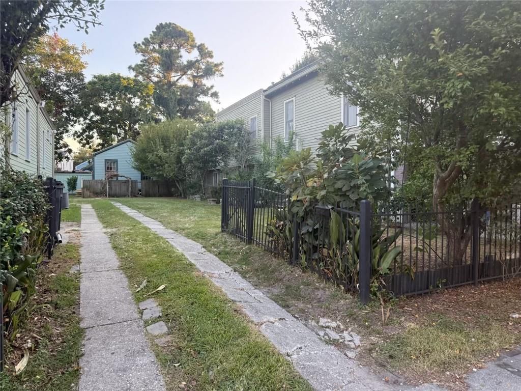 Build your dream home on this large lush lot with fruit trees along the perimeter; gated off street parking; Plus a bonus 730 sq foot structure at the rear of property that is fully equipped with kitchen, bedroom & bath. This gorgeous lot is elevated above the street and property is located in flood zone X. It has never flooded even during Hurricane Katrina or any other weather event in the last 20 years. The Neighborhood is top notch and sought after by many who love to live a few blocks from the Fairgrounds/Jazz Fest, Restaurants and City Park. This is a one of a kind opportunity!