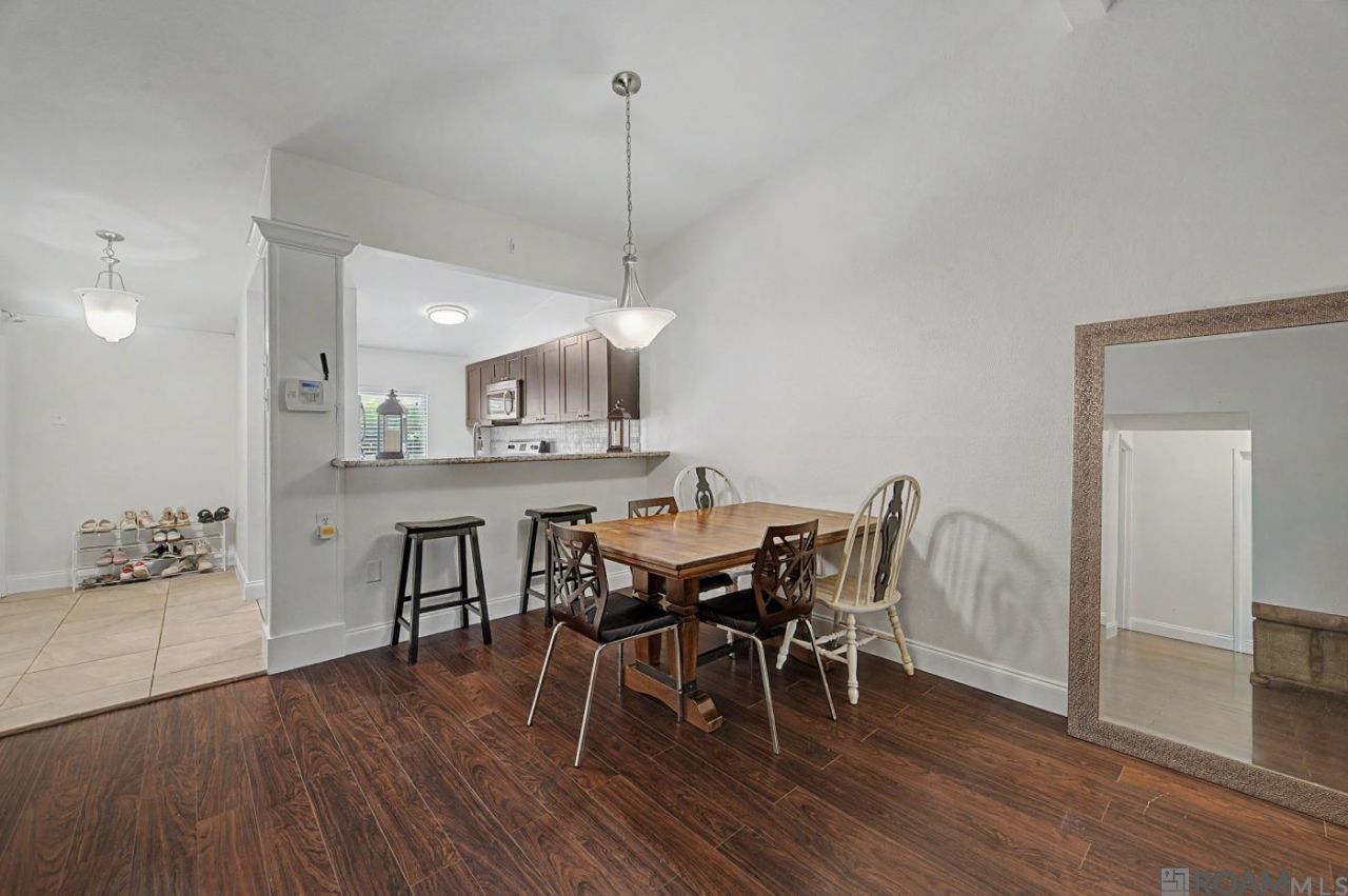 This freshly painted residence features a kitchen equipped with granite countertops, a tile backsplash, and stainless steel appliances, including a range/oven, microwave, and refrigerator. The space offers a breakfast bar and generous cabinet storage. The den boasts vaulted ceilings and a balcony overlooking shaded live oak trees. The unit includes two bedrooms and a very large bathroom. Lake Crest is a quiet, gated community with two access points and a high rate of long-term owner occupancy. It is conveniently located within walking distance of LSU and provides easy access to I-10 and downtown. Additionally, it's an easy walk to the nearby dog park, BREC Park or LSU lakes. Please let me know if you would like more information or wish to schedule a viewing.