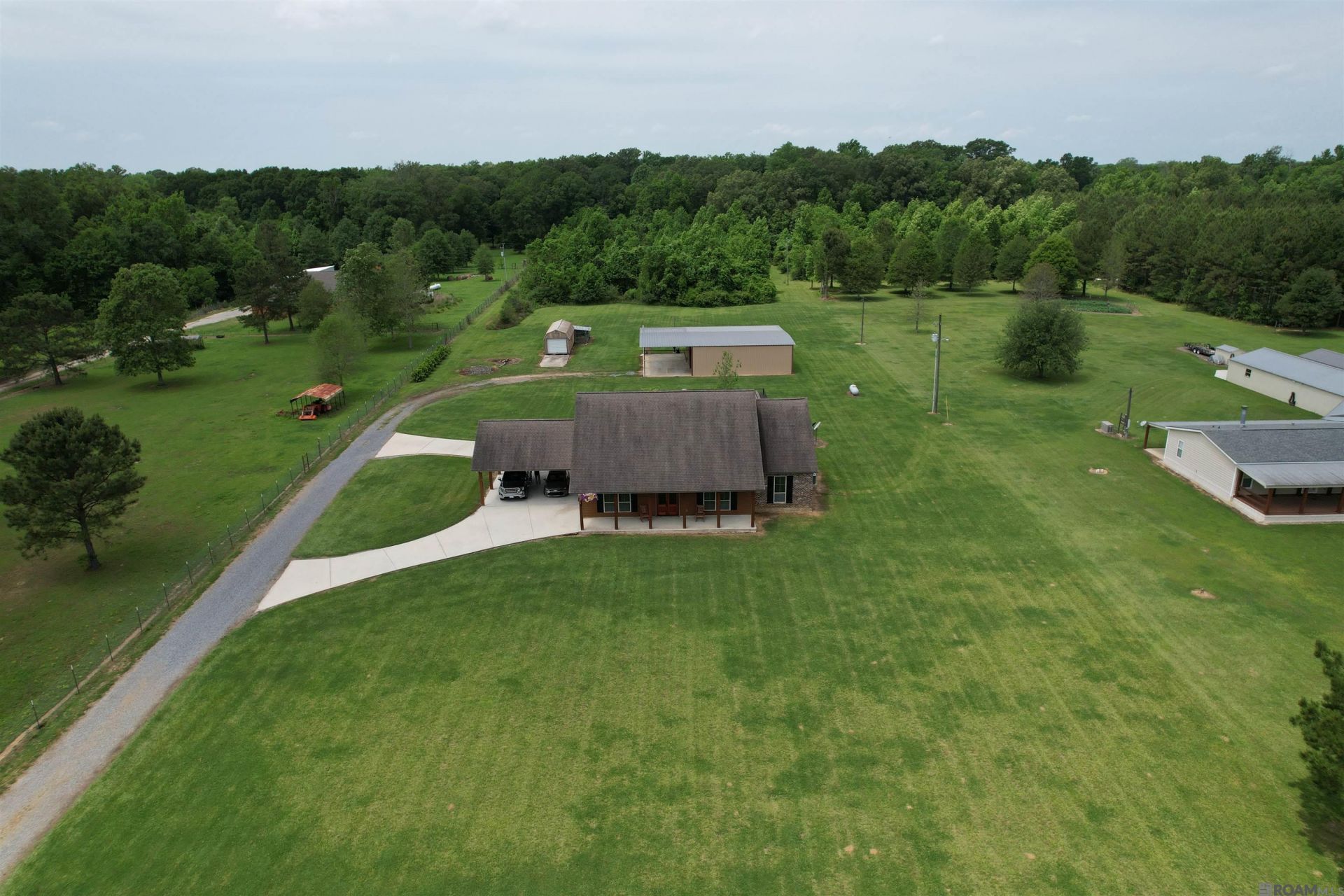 Country charm meets modern living in this beautifully crafted home situated on 8.14 acres. From the moment you arrive, you'll notice the exceptional attention to detail throughout. The home features cypress cabinetry, 9' and 10' ceilings, and quality finishes at every turn. The kitchen opens seamlessly into the living and dining areas, creating an inviting open-concept space perfect for everyday living and entertaining. Highlights include granite countertops, stainless steel appliances, and a stunning cypress beam that defines the space while maintaining an open feel. The living room offers elegance and warmth with a vaulted ceiling and beaded cypress walls. The spacious primary suite provides a relaxing retreat and flows into the en-suite bathroom, which includes a separate whirlpool tub, stand-alone shower, and a large walk-in closet. Step outside to enjoy the outdoor kitchen and fireplace - ideal for entertaining or unwinding in a peaceful setting. This property also features a 40'x40' shop with an additional 20'x40' covered area complete with a pickle ball court. Schedule your private showing today to experience everything this unique property has to offer. *Structure square footage nor lot dimensions warranted by Realtor.