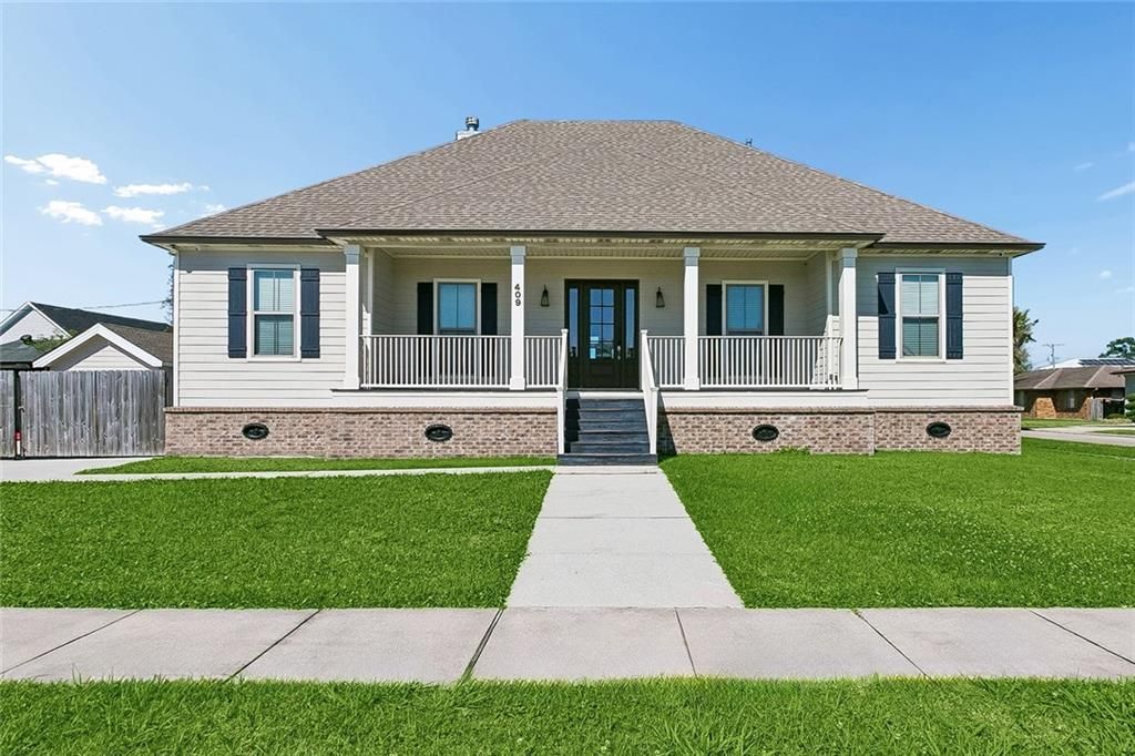 BUILT IN 2022, THIS BEAUTIFULLY DESIGNED RAISED HOME OFFERS 4 BEDROOMS, 2.5 BATHS WITH AN OPEN FLOOR PLAN. HAS A FORMAL LIVING/DINING ROOM OPTION AND A SPACIOUS DEN WITH A GAS FIREPLACE. THE KITCHEN FEATURES A LARGE ISLAND AND GRANITE COUNTERTOPS WITH MATCHING FINISHES IN BATHROOMS. PRIMARY SUITE IS PRIVATELY LOCATED SEPERATE FROM THE ADDITIONAL BEDROOMS. SITUATED ON A CORNER DOUBLE LOT WITH AMPLE PARKING, INCLUDING ENOUGH SPACE FOR A BOAT. ENJOY OUTDOOR LIVING WITH FRONT AND REAR PORCHES, A FRESHWATER HEATED POOL AND JACUZZI. EQUIPPED WITH AN OUTDOOR KITCHEN AREA THAT HAS SURROUND SOUND OUTSIDE AND INSIDE THE HOME. AN ENTERTAINER'S PARADISE. ADDITIONAL FEATURES INCLUDE GAS SERVICE, TANKLESS WATER HEATER, FENCED YARD, GUTTERS, WHOLE HOUSE GENERAC GENERATOR, RANGE OVEN, DISHWASHER & MICROWAVE AND SHED TO REMAIN. THIS HOME CHECKS ALL THE BOXES-SPACE, STYLE AND OUTDOOR LIVING!