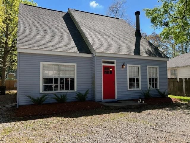 Delightful blue Cape Cod so centrally located! Circular drive offers plentiful off-street parking! C'mon in and enjoy the spacious Liv Rm -- larger than to be expected. Brick fireplace lends to the charm & ambience of the Living Rm but is for aesthetics only & cosmetic -- not intended for use. Spacious & well-appointed kitchen in U shape. Stainless kitchen fridge remains for Lessee's use, as will Washer & Dryer. Laundry rm also has utility sink for quick wash-ups. Primary Bdrm & Bath are downstairs. Currently, Primary Bdrm being used as music studio. Two nicely-sized bedrooms & refurbished full bath upstairs. Space alongside house for additional storage. But here's the real attraction to this home: covered & welcoming rear covered patio PLUS firepit area (Lessor may leave chairs for Lessee's use if requested) AND a newly built "made to look vintage" rear shed for bicycles or extras because adequate storage is always needed! Easy yard to maintain as little grass & small garden beds. No smoking. No pets. Target occupancy date 6/1/26 but may be earlier -- Lessor open to reasonable requests.