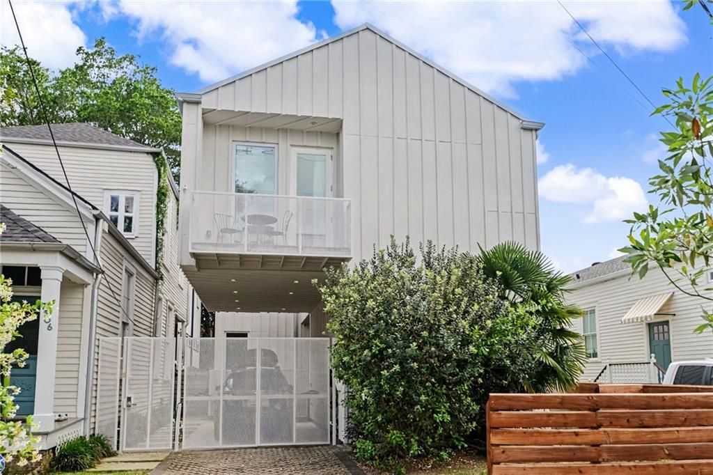 Stand out, unique property with flexible floor plan, striking, contemporary design by architect Jonathan Tate, gated, covered parking and multiple outdoor spaces located just blocks to the shopping and dining of Maple St, Tulane & Loyola Universities, St. Charles Ave, and Audubon Park. The first floor, main unit features 2 bedrooms with 2 ensuite bathrooms, a central atrium that provides ample natural light to the living areas, vaulted ceilings, hardwood floors and sleek bathrooms and kitchen with quartz countertops. Upstairs you will find a 733 sf unit with 1 bedroom, 1 bathroom, its own kitchen and laundry offering many possibilities as guest quarters, multi generational living or oversized primary suite. Enjoy the doors on the roomy front porch or back yard.