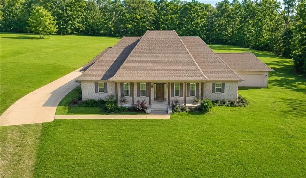 A MUST SEE! From the moment you wind down the peaceful country driveway, you'll feel right at home at this stunning custom residence nestled on 9 beautiful acres. Built just 3 years ago, this thoughtfully designed 3 bedroom, 3.5 bath home offers a spacious open floor plan ideal for both everyday living and entertaining. Interior highlights include plantation shutters, crown molding, luxury vinyl plank flooring, generous closets, and custom built-in cabinetry and shelving throughout. The large kitchen is both stylish and functional, featuring sleek cabinetry, granite countertops, stainless steel appliances, a center island, and abundant storage. The spacious primary suite is a true retreat, complete with an attached craft room, large walk-in shower, soaking tub, dual vanities, and two walk-in closets. A true guest wing provides privacy and comfort, featuring handicap-accessible design and a private en-suite bathroom, making it ideal for guests, multigenerational living, or extended stays. Additional features include two 80-gallon water heaters and a 350-gallon propane tank for added efficiency and peace of mind. Step outside to enjoy the impressive outdoor living area, complete with an industrial-style kitchen setup featuring stove/oven/flat top, grill, vent hood, granite bar countertop, mounted TV, and expansive covered patio ? perfect for relaxing or entertaining while taking in the peaceful surroundings. This property offers the ideal blend of privacy, comfort, and modern design ? truly a rare find. Items to remain: Outdoor TV, living room TV, six outdoor bar stools, outdoor kitchen sink, stove/oven/flat top, and grill. Negotiable items: Eight indoor kitchen bar stools. Items not included: Refrigerator, washer, dryer, freezer, surround sound receiver and subwoofer, outdoor stainless tables, smoker, and patio furniture.