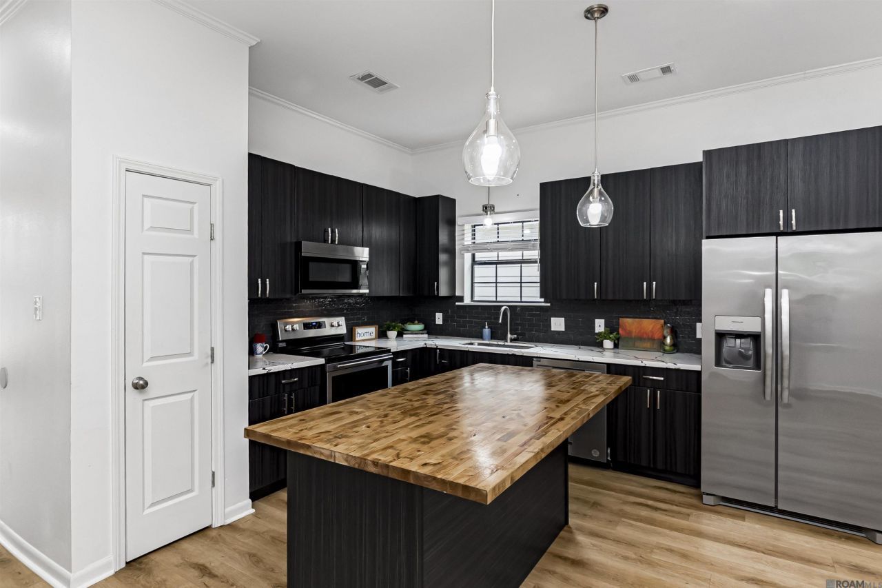 Check out this beautiful modern garden home featuring soaring ceilings and a spacious open floor plan, perfect for everyday living and entertaining. The kitchen boasts custom countertops with wood on the island and stainless steel appliances? the refrigerator, washer, and dryer all remain! Half bath located downstairs off the kitchen. Upstairs you will find all three bedrooms with natural light just pouring in from all the windows! The spacious primary bedroom features an en suite bathroom with a large walk-in closet. Outside is a fully fenced yard with a 12x15 wooden deck and a 10x12 storage building that will remain. Built in 2022 and located in Flood Zone X, this home is within walking distance to schools and just minutes from shopping and dining. Plus, 100% financing is available for qualified buyers!