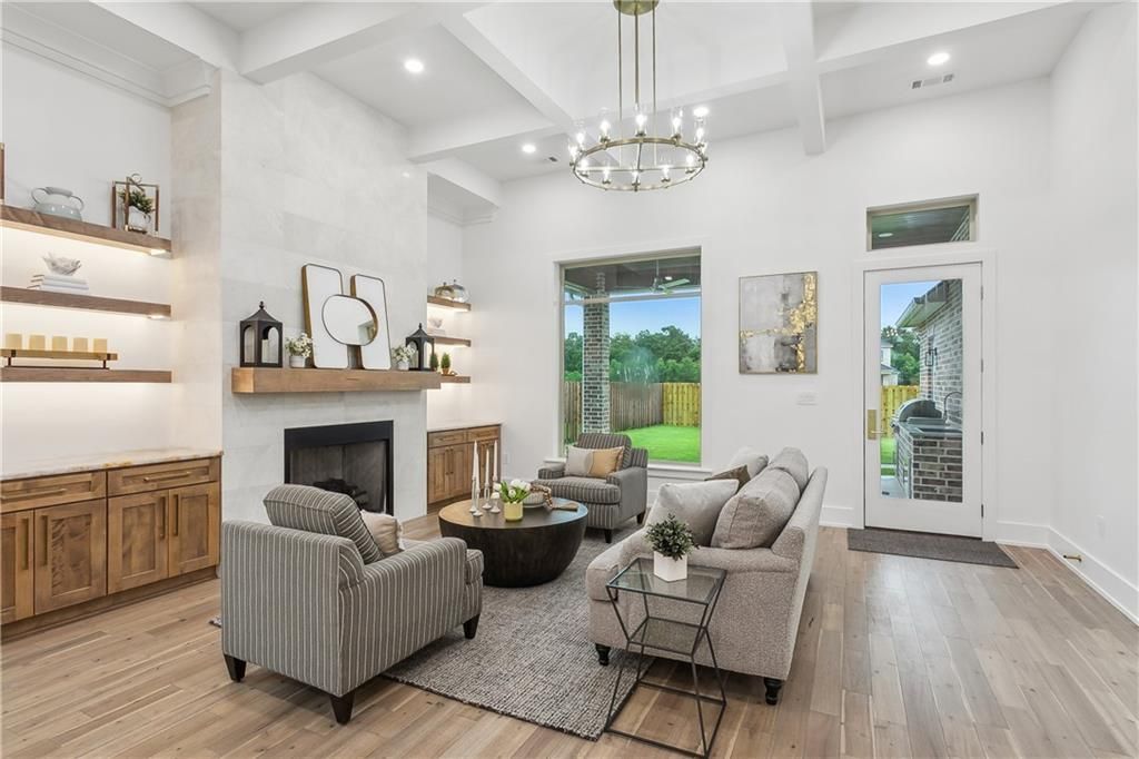 This exceptional 4-bedroom, 3-bathroom residence offers over 2538 square feet of refined living in The Parks of Plaquemines. Built on a premium corner lot, the home showcases a thoughtful layout, elevated finishes, and standout design elements that set it apart. Step inside to discover soaring 10- and 12-foot ceilings, natural wood and ceramic tile flooring, and a grand living area anchored by a custom fireplace. The open-concept design flows seamlessly into a gourmet kitchen featuring high-end appliances, custom cabinetry, and a showstopping backlit Cristallo quartzite island? built for both culinary prep and entertaining. The triple-split floor plan offers privacy and flexibility, with a spacious primary suite that includes a spa-style bath, dual vanities, soaking tub, and walk-in shower. Three additional bedrooms and a dedicated mudroom provide ample space for guests, work-from-home setups, or multi-generational living. Additional features include Covered patio with outdoor kitchen, Oversized garage with storage. This home is just right for buyers seeking custom craftsmanship, functional elegance, and a move-in-ready experience in a well-established neighborhood. Schedule your showing today and explore the value and versatility this property offers. Seller is offering closing cost concessions?contact listing agent for details or tour the home to experience the value firsthand.