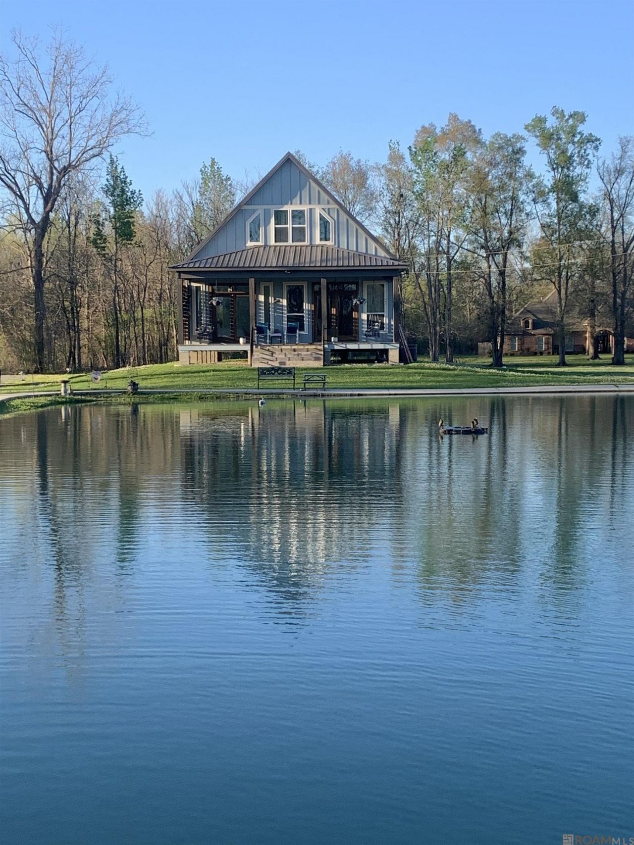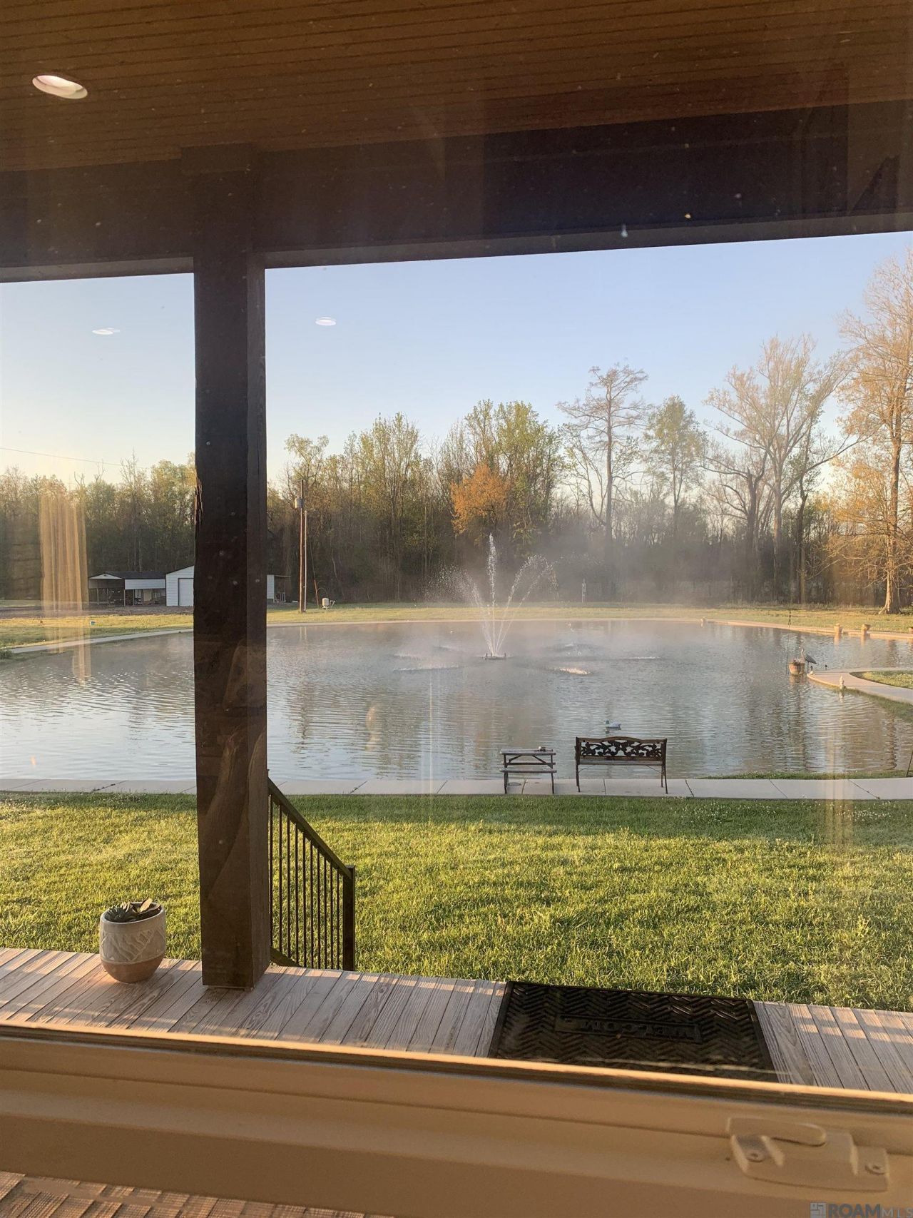 Imagine waking up to the sound of a fountain rippling across your private pond. Built less than two years ago and situated on nearly 2 acres, this waterfront farmhouse blends modern luxury with peaceful country living. Step onto the covered porch and take in uninterrupted water views that immediately set this home apart. Inside, natural light pours through oversized windows framing the pond from multiple rooms ? including the primary suite. The open-concept layout is anchored by a designer kitchen featuring quartz countertops, gas range, custom cabinetry, large island, and walk-in pantry. The living area offers high ceilings and a beautiful fireplace wall, creating a warm yet refined space for entertaining. The primary suite is a retreat with private porch access and a spa-style bath complete with soaking tub, dual vanities, and oversized custom shower. Outside, nearly 2 acres give you room to breathe. A 180-foot deep water well supplies the pond when needed, ensuring water levels are maintained. RV hookups are already in place, adding flexibility for guests or travel convenience. Fish in your stocked pond, host gatherings, or simply enjoy the privacy that's increasingly hard to find ? all just minutes from Baton Rouge.