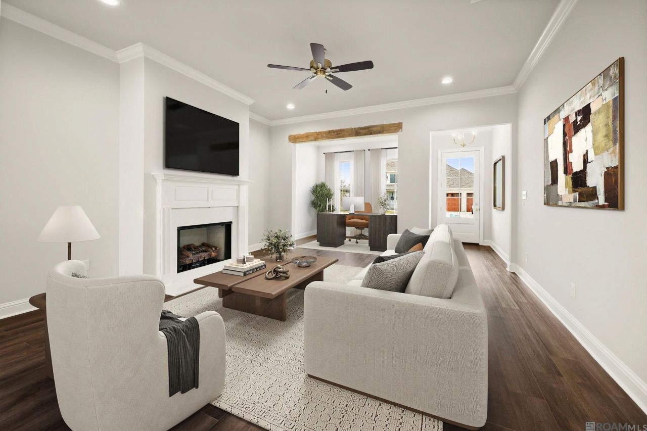 Hadley B floorplan by Level Homes ready now in Heather Oaks! The Hadley is a one story, 4 bedroom, 2 bath home with an open and split floor plan and just over 2000 sq feet of living. You will enter this home from the inviting front porch into the foyer which leads you to the open living room and kitchen. There is a flex room located off the living room with views of the front porch. The living room is centered around a ventless gas fireplace with a Carrara Breve quartz surround and has room for 'optional built in wall units. The gourmet kitchen features custom painted cabinetry with 5 hardware pulls and under cabinet lighting, large center island with granite composite sink and overhanging pendant lights, Carrara Breve quartz countertops with a matte white subway tile backsplash, stainless appliance package, and a walk-in pantry. The master suite is very spacious and features a spa-like bath with dual vanities, quartz countertops, framed mirrors, separate 5' soaking tub, tiled shower with a seamless glass enclosure and a walk-in closet. There are three additional bedrooms, a full bath with dual vanities, a huge walk in laundry room with a space for 'optional cabinets as well as a 'mud bench / optional desk area at the garage entry. The yard is fully sodded and professionally landscaped! Other lots and plans available. Heather Oaks is a walkable community located along East Heather Drive, only minutes away from Highway 90 in Luling, Louisiana. Heather Oaks offers easy access to schools, dining, parks, and entertainment. Walking Distance to schools, Rathborne Park, Grand Ridge Golf Club and St. Charles Parish Regional Library! Less than 30 minutes to mid -city New Orleans!