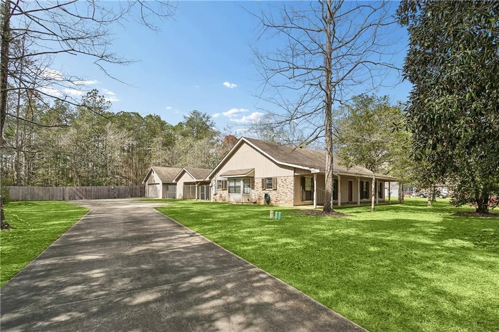 Beautiful recently (2022) remodeled 3-bedroom, 2-bath home on 1.25 acres in Pearl River. This spacious property features no carpet, with tile and laminate flooring throughout, plus newer ceiling fans and LED fixtures. The kitchen and bathrooms offer solid-surface and granite countertops for a polished, updated look. Home is storm-ready with a whole-house generator and aluminum shutters. Exterior features include a fully fenced yard, large concrete driveway, 2-car detached garage, RV hookups, and multiple storage areas. A rare combination of acreage, updates, and functionality in a peaceful setting.