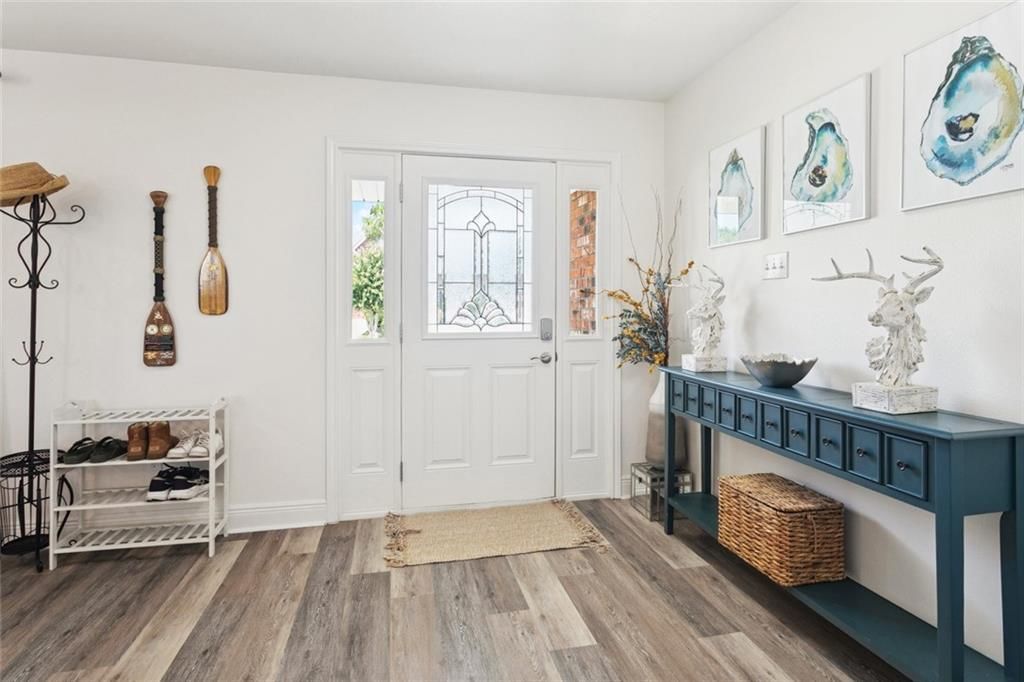 Absolutely gorgeous home in sought after Eden Isles, where the pictures simply cannot capture its true beauty. This stunning 3 bedroom, 2 bath home offers an open floor plan that seamlessly connects the living, breakfast, and kitchen areas, creating a welcoming space for both everyday living and entertaining. The updated kitchen features a stylish new coffee bar or buffet in the breakfast area, adding both function and charm. The primary bedroom is a true retreat with French doors that open directly to the backyard, offering peaceful lake views right from your bed. Step outside to the brand new screened in porch and take in the breathtaking water views. The backyard is fully enclosed with brand new vinyl fencing, offering both privacy and security, while still showcasing the dock and boathouse with an electric hoist. This location offers a short 5 minute idle out to the lake, quicker trip from most other locations in Eden Isles. Whether you are enjoying quiet mornings with coffee, relaxing in the evenings, or entertaining friends, the setting is nothing short of spectacular. With over 50 homes currently available in Eden Isles, this property is truly the one that stands out from the rest. From the upgrades to the unmatched views, it is a rare find that combines comfort, style, and waterfront living all in one. This home is a true must see.