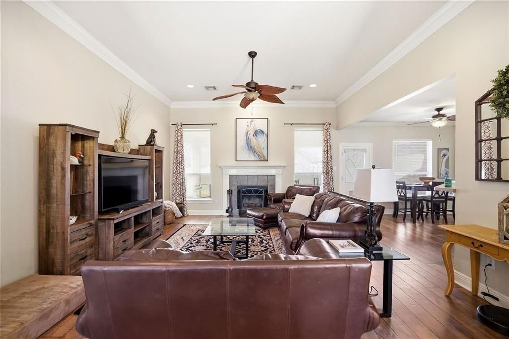 Welcome to this charming home in the Avalon Trace subdivision! This 3 bedroom, 2 bath home features an open floor plan with a spacious living area with gas fireplace that flows right into the kitchen and breakfast area, plus a separate formal dining room for gatherings. The split floor plan offers added privacy, with the primary suite featuring a jacuzzi tub, separate shower, and a large walk-in closet. You'll also love the convenience of the two-car attached garage and the fact that there's no carpet throughout the home. Step out back to enjoy the covered patio for relaxing or entertaining along with a fully fenced backyard for extra privacy. X flood zone. Roof is 2021.