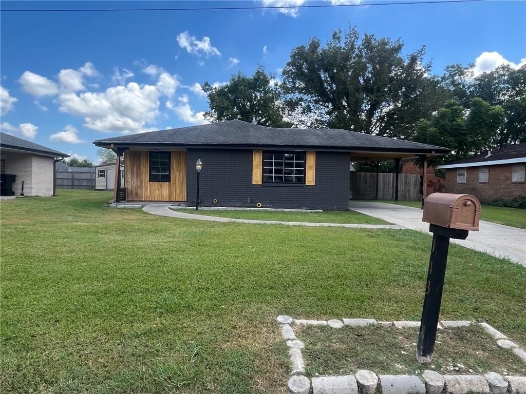 Located in a quiet neighborhood within Belle Chasse School District. This beautifully updated home offers comfort, style, and convenience. Featuring 3 spacious bedrooms, 2 full baths, and central AC & heating, it's great for families of all sizes. There's even a huge space that has functioned as a 4th bedroom or additional entertaining space. Enjoy a modern kitchen with new appliances, updated bathrooms, and a tankless water heater for added efficiency. The exterior offers rear yard access, a covered carport, and a large metal storage shed, all sitting in an X flood zone. Don't miss your chance to own this move-in-ready gem in Belle Chasse! $500 closing cost credit for buyer if closed by Latitude Title, LLC