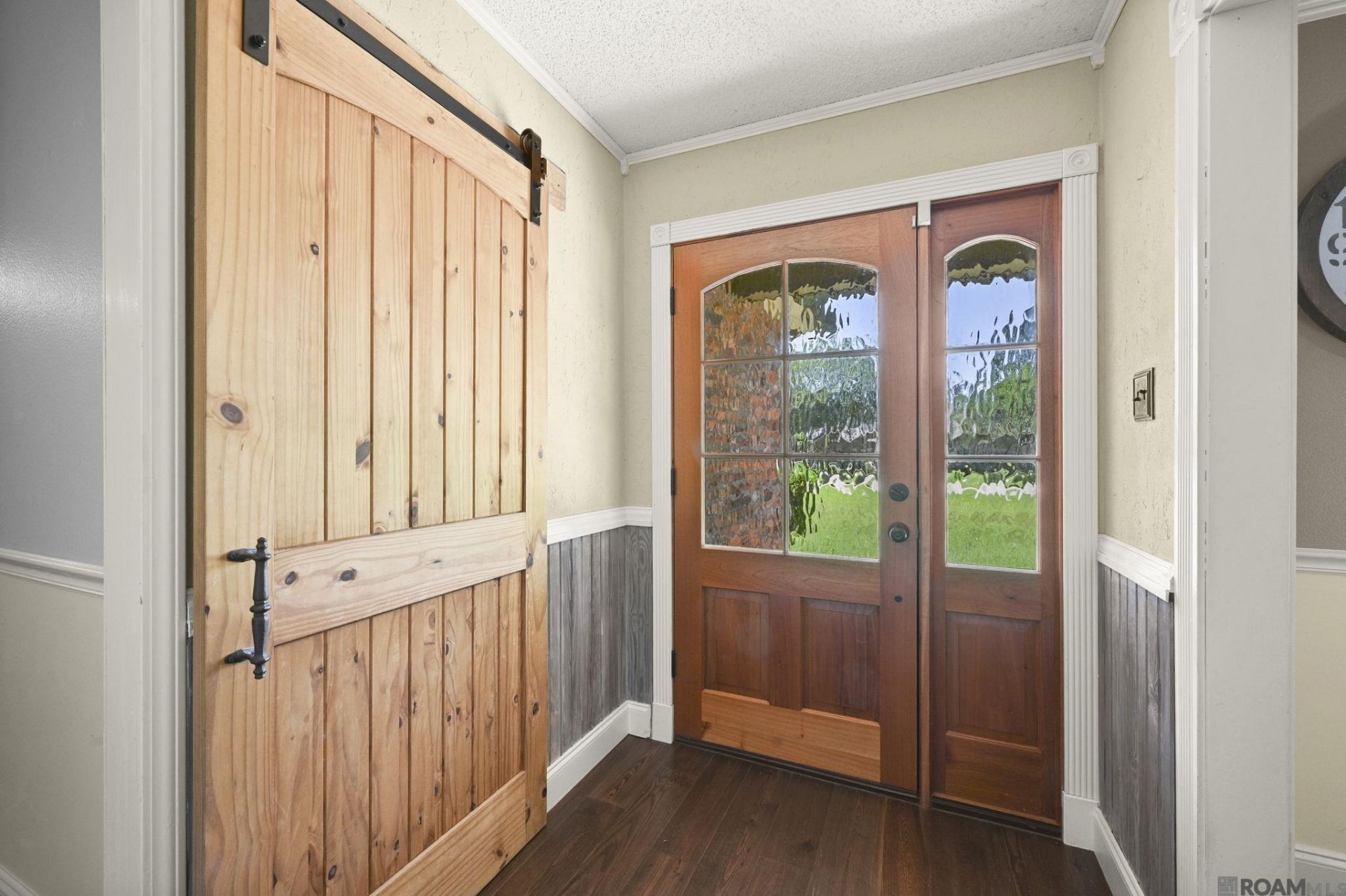 Step into timeless elegance with this beautifully updated home that perfectly blends warmth, character, and modern touches. Rich wood floors flow throughout the main living spaces, anchored by a cozy wood-burning fireplace that creates an inviting focal point. The living room showcases stunning custom built-ins, while striking cypress beams gracefully define the transition between the living and dining areas, adding architectural charm and depth. The kitchen is truly a showstopper, featuring Maison Blanche CM custom cabinetry, exquisite Bordeaux granite countertops, stainless steel appliances, and a one-of-a-kind antique cypress island that brings both beauty and function to the space. Throughout the home, you'll find thoughtful details including crown molding, elegant wainscoting, and stylish custom barn doors that elevate every room. The exterior continues the home's distinctive appeal with cypress beams and a beautifully crafted cypress front door, offering exceptional curb appeal. Out back, enjoy a spacious covered patio perfect for relaxing or entertaining, along with a convenient storage shed. The backyard also includes a gated entry with existing electronic components in place, providing the option to easily convert to a fully operable automatic gate. This home is a perfect blend of craftsmanship, comfort, and style?ready to welcome its next owner.