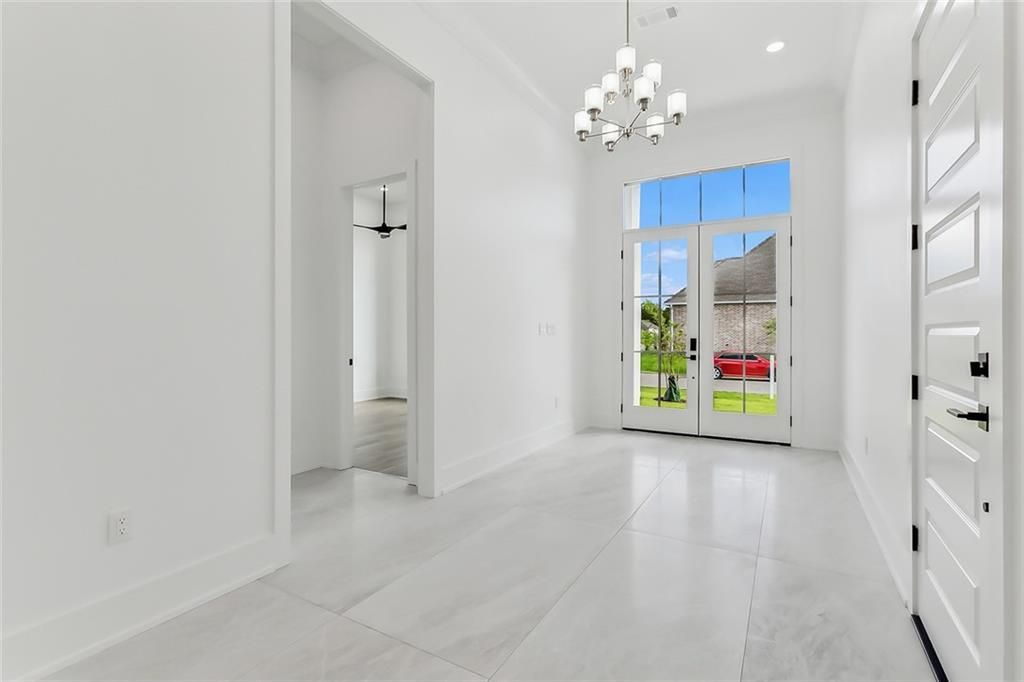 Step into refined living in a newly constructed masterpiece located in The Parks of Plaquemines. Designed with intention and built to impress, this single-story residence offers 2,623 square feet of living space and over 3,650 square feet under roof, all situated on a premium corner lot. From the moment you enter the grand foyer, soaring 12-foot ceilings and expansive architectural lines set the tone for a home that blends sophistication with comfort. The heart of the home is a chef's kitchen that commands attention?anchored by a luminous backlit Cristallo Quartzite Island, surrounded by custom cabinetry, high-end appliances, and framed by a picture window that captures serene outdoor views. The open-concept living area is bathed in natural light from floor-to-ceiling windows, creating a seamless connection between indoor elegance and outdoor enjoyment. The thoughtfully designed layout includes four spacious bedrooms and three full baths, with the primary suite offering private patio access, a spa-inspired bath, and an oversized walk-in closet complete with built-in vanity. A side courtyard enhances the home's entertaining potential, featuring a fully equipped outdoor kitchen with gas grill, sink, and built-in refrigerator?built for hosting with ease. Contact the listing agent for details or schedule a private tour to experience the craftsmanship and value firsthand.