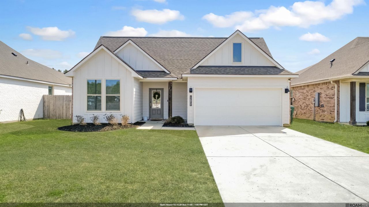 *ASSUMABLE VA Loan 4.75% available for those who qualify* Welcome to Indigo Trails in Denham Springs, where modern farmhouse style meets everyday comfort. This beautifully maintained Dane plan offers a spacious one-story layout with an open-concept design perfect for entertaining and daily living. The inviting exterior features painted Hardie accents and brick on three sides, creating timeless curb appeal. Inside, the kitchen is the heart of the home with granite countertops, subway tile backsplash, shaker-style cabinetry, stainless gas range, microhood, dishwasher, corner pantry, and a large island with apron-front farmhouse sink overlooking the living and dining areas. Luxury vinyl plank flooring and updated finishes throughout give the home a clean, airy feel. The split floor plan provides privacy, with the primary suite tucked away at the rear. The owners have customized and fully finished the primary closet, adding both beauty and functionality. The en-suite bath includes dual vanities, a soaking garden tub, and separate shower. Three additional bedrooms and a second full bath offer flexibility for family, guests, or office space. Unlike new construction, this home is truly move-in ready. A new full backyard privacy fence, completely repainted interior, and customized and finished out both the primary closet and laundry room ? upgrades that add real value. And NO CARPET! Energy-efficient features include a tankless gas water heater, radiant barrier roof decking, Low-E insulated windows, LED lighting, and dense cellulose insulation. Smart home automation adds everyday convenience. Located near the interstate with quick access to Juban Crossing, Bass Pro Shops, dining, and Baton Rouge, Indigo Trails offers a neighborhood park, playground, fishing pond, and is zoned for highly regarded Walker schools. Cozy, bright, and perfectly suited as a starter home, this one is ready for its next chapter.