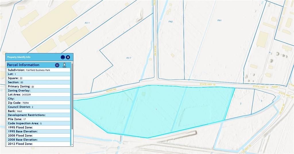 Industrial Land for Lease (Land Lease Only) Size: 55.79 Acres (2,430,168.84 SF) Minimum Divisible: 1 Acre Lease Rate: $0.55 ? $0.65 per SF per Year Zoning: M-2 Heavy Industrial Lot 1, Square 22 at Fairfield Business Park offers 55.79 acres of M-2 Heavy Industrial land available for lease, with flexible parcel sizes starting at 1 acre. This offering is a land lease only, making it ideal for tenants seeking a long-term site to develop and operate their own facilities. The property features direct frontage on LA-18 (River Road) and is located near the intersection of LA-18 and LA-541, positioning it in a highly accessible industrial corridor. The site is well suited for industrial, logistics, fabrication, or support operations serving the regional maritime and energy industries. Strategically located within the Avondale industrial corridor, the property is positioned near Avondale Global Gateway, providing immediate proximity to one of the Gulf Coast's emerging maritime and logistics hubs. The property benefits from excellent transportation access, with frontage along LA-18, and close proximity to US Highway 90, Interstate 10, the Huey P. Long Bridge, and the Mississippi River industrial corridor. This location provides strong regional connectivity for industrial users requiring access to major transportation routes, port facilities, and the greater New Orleans industrial market. Lot 1, Square 22 consists of 55.79 acres (2,430,168.84 square feet) and can be subdivided with a minimum parcel size of 1 acre, providing flexibility for a variety of industrial users. The M-2 Heavy Industrial zoning allows for a wide range of industrial uses including logistics, fabrication, storage, and yard operations.