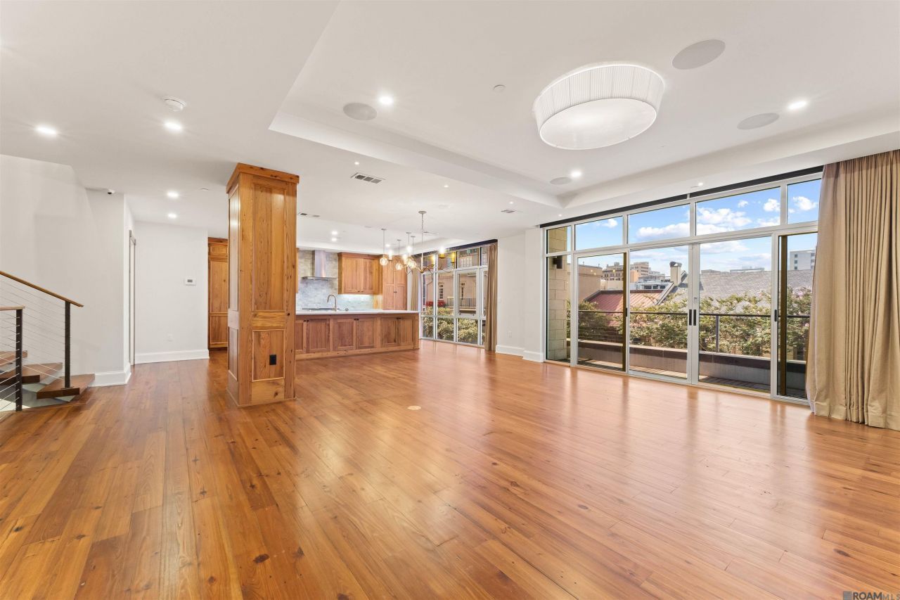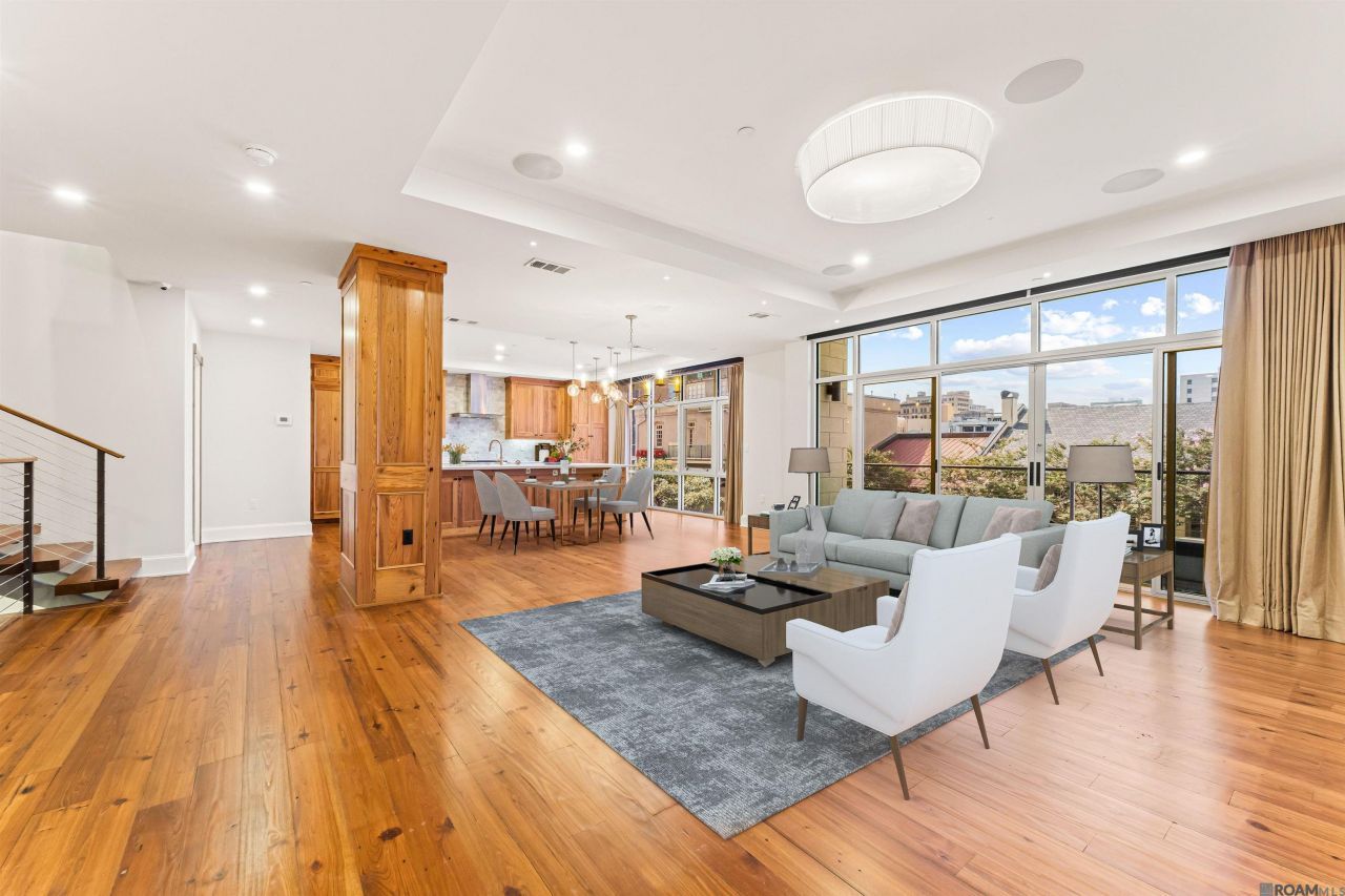 Downtown living reaches new heights in this breathtaking 4-story townhouse offering over 4,000 sq ft of refined luxury and panoramic Mississippi River views. Located in the heart of downtown Baton Rouge, this modern residence features 3 bedrooms, 4.5 bathrooms, and a private elevator providing effortless access to all four levels. The first floor includes a spacious guest suite, full bath, and a private fenced patio just off the two-car garage with extra guest parking. The second floor offers a tranquil primary suite with a spa-style bath, generous walk-in closet, and an additional bedroom that could also be a great office. On the third floor, floor-to-ceiling windows showcase river and skyline views across the open-concept living, dining, and chef's kitchen?complete with quartz countertops, top-tier stainless appliances, and custom cabinetry. The top floor is built for entertaining, with a media room and an expansive terrace featuring an outdoor kitchen and sweeping downtown vistas. Smart home features, designer finishes, and walkability to the State Capitol, local landmarks, and the city's best dining and culture make this a rare opportunity to own a true downtown gem.