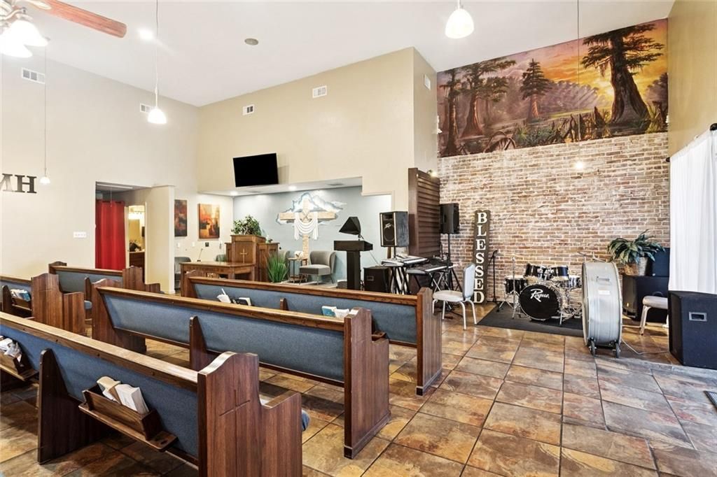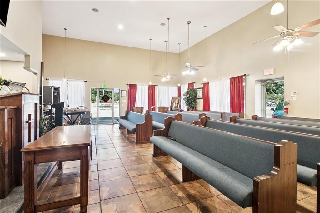 Positioned on a high visibility corner lot, this building stands out with its abundance of large windows that flood the interior with natural light ad showcase excellent street presence. The property offers a highly adaptable layout suitable for a variety of professional, community, or commercial purposes. The interior features a large room great for gatherings, events, or flexible workspace, along with a dedicated office area that provides space for administration or private meetings.