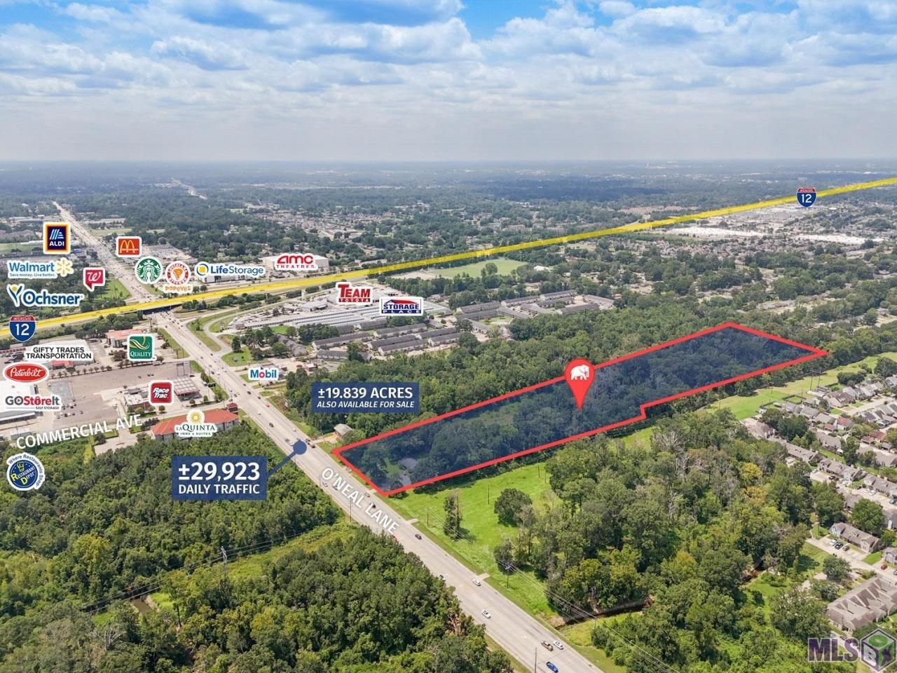 Now available for sale, this expansive ±12.93-acre property located at 1444 O'Neal Ln in Baton Rouge offers an unparalleled opportunity for mixed-use development. Positioned just ±0.3 mile north of I-12 and within walking distance of the Ochsner Medical Center, this site is one of the last large tracts available for development in the area. The property boasts approximately ±220.50 feet of frontage along highly traveled O'Neal Ln ±29,923 daily traffic), providing excellent potential for visibility and access. It is zoned C1 (Light Commercial) and B (Transition), allowing for a wide range of development possibilities from retail outlets to residential complexes. The southern border is a ±19.839-acre lot, also available for sale, with multifamily developments and residential neighborhoods bordering the northern and western sides, ensuring a steady flow of potential customers and residents. The O'Neal Lane corridor in Baton Rouge is a strong retail and residential-based submarket with many strong brands including Walmart Supercenter, Aldi, AMC Theatres, Starbucks, Walgreens, McDonald's, Ochsner Medical Center Baton Rouge (Hospital with 150 beds), Take 5 Oil Change, and many more. An existing structure on the property is included at no additional value. ?Just ±0.3 mile north of I-12 and Ochsner Medical Center (150 beds) ?±220.50 FT of frontage along highly traveled O'Neal Ln " ±29,923 Daily Traffic ?Adjacent ±19.839-acre lot also available for sale, opportunity for up to ±32.77 acres ?Corridor is a strong retail and residential-based submarket with strong national brands View Sale Brochure at https://buildout.com/connect/sharing/prime-development-opportunity-13-acre-site-at-i12-1444-oneal-ln-baton-rouge-la-70816?file=3393510 Contact Peter Laville at 225-276-7561 for more information.