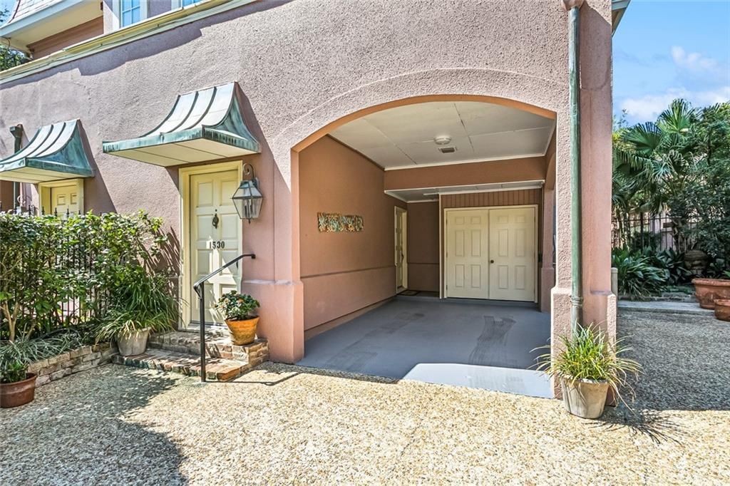 Luxury Garden District Townhouse! 2 PARKING SPACES! BALCONY! This unique townhouse is one of only 2 townhouse style condominiums at The Charles House. Enjoy life as part of a well established complex while living in a unit that functions like a stand alone home! Easy access with electric gated parking under your carport and direct entrance to your unit. Gorgeous details include Travertine floors on the lower level, crown molding, spacious living and dining rooms with lovely view of and direct access to your private patio and the pool. The den with pretty built-in display cabinet could also serve as a 3rd bedroom as there is a vestibule area to a closet and a full bath. Impeccably maintained unit includes a new roof and whole house generator. The 2 upstairs bedrooms are both en suite with generous closets. Laundry closet with side by side washer and dryer is situated in the upstairs hall. Great storage throughout the unit includes a fully floored attic. Fun balcony off of the front bedroom lets you peek at St. Charles Ave to know when the parade has begun! Great for entertaining inside and out. The rooftop common area with grill, tables and chairs is nearby. Simply move your car for a fun Mardi Gras party or crawfish boil under the carport! Walk to the St. Charles Streetcar, Commander's Palace, The Rink and more! Come see this beautiful unit and it's inviting Big Easy lifestyle!