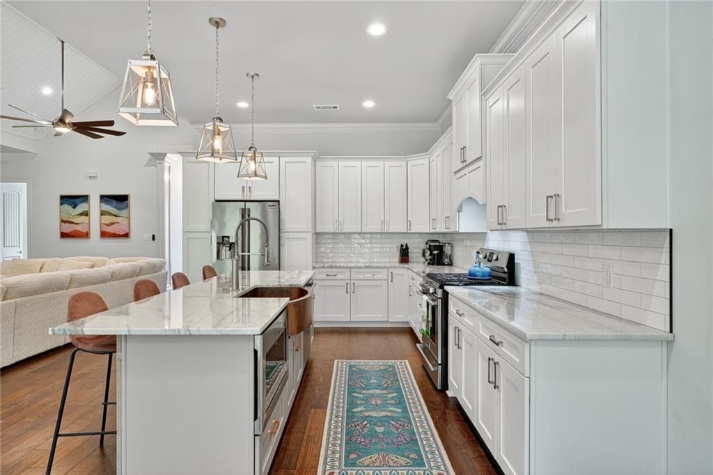 Stunning Chateau style home only blocks from Bayou St. John, City Park, Lakefront and The Fairgrounds! Built in 2020 and meticulously maintained, features rare 4 bedrooms and 3 bathrooms on same floor, oversized backyard with room for a pool, soaring vaulted ceilings, triple crown molding and an open floor plan with the kitchen anchoring oversized living and dining areas. Luxurious primary suite with enormous custom built walk-in closet and ensuite bath featuring dual vanities, soaking tub and glass encased walk-in shower. Private guest suite along with additional guest wing with two spacious guest rooms and a full bathroom. Large laundry room with sink. Wall of windows and glass French doors overlook the large fenced backyard, a large covered back porch. Large attic, easy access to interstate and across from Holy Cross High School.