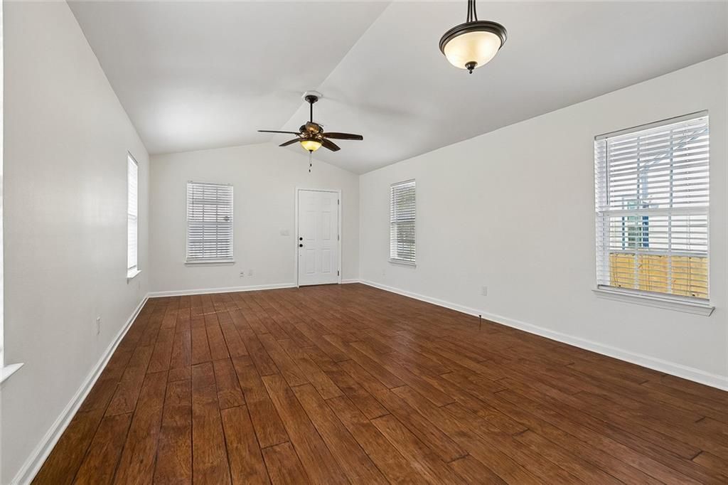 Great opportunity to own an almost new well-maintained 3-bedroom, 1-bath home offering a functional layout designed for comfortable everyday living. The home welcomes you with a covered front porch, creating a great space to relax and enjoy the neighborhood. Inside, the spacious living room features vaulted ceilings, abundant natural light, and durable laminate flooring, providing a bright and inviting atmosphere. The open layout flows easily into the kitchen area, making the space great for daily living and entertaining. The kitchen offers white cabinetry, modern hardware, solid surface countertops, stainless steel gas range, and ample cabinet storage, creating a clean and functional cooking space. A convenient pass-through bar connects the kitchen to the living area, adding additional serving and seating options. The home includes three well-proportioned bedrooms, each with good natural light and closet space. The updated bathroom features a double vanity, modern lighting, and a tiled tub/shower combination, offering a clean and refreshed design. Additional highlights include a dedicated laundry room with storage shelving, updated finishes throughout, and a layout that maximizes usable space. Outside, the fully fenced backyard provides a great setting for outdoor gatherings, pets, gardening, or future outdoor improvements. The lot also offers off-street parking along the side driveway. Located with convenient access to downtown New Orleans, neighborhood restaurants, local parks, and major roadways, this property offers strong appeal for buyers seeking an updated home with practical living space and outdoor privacy.