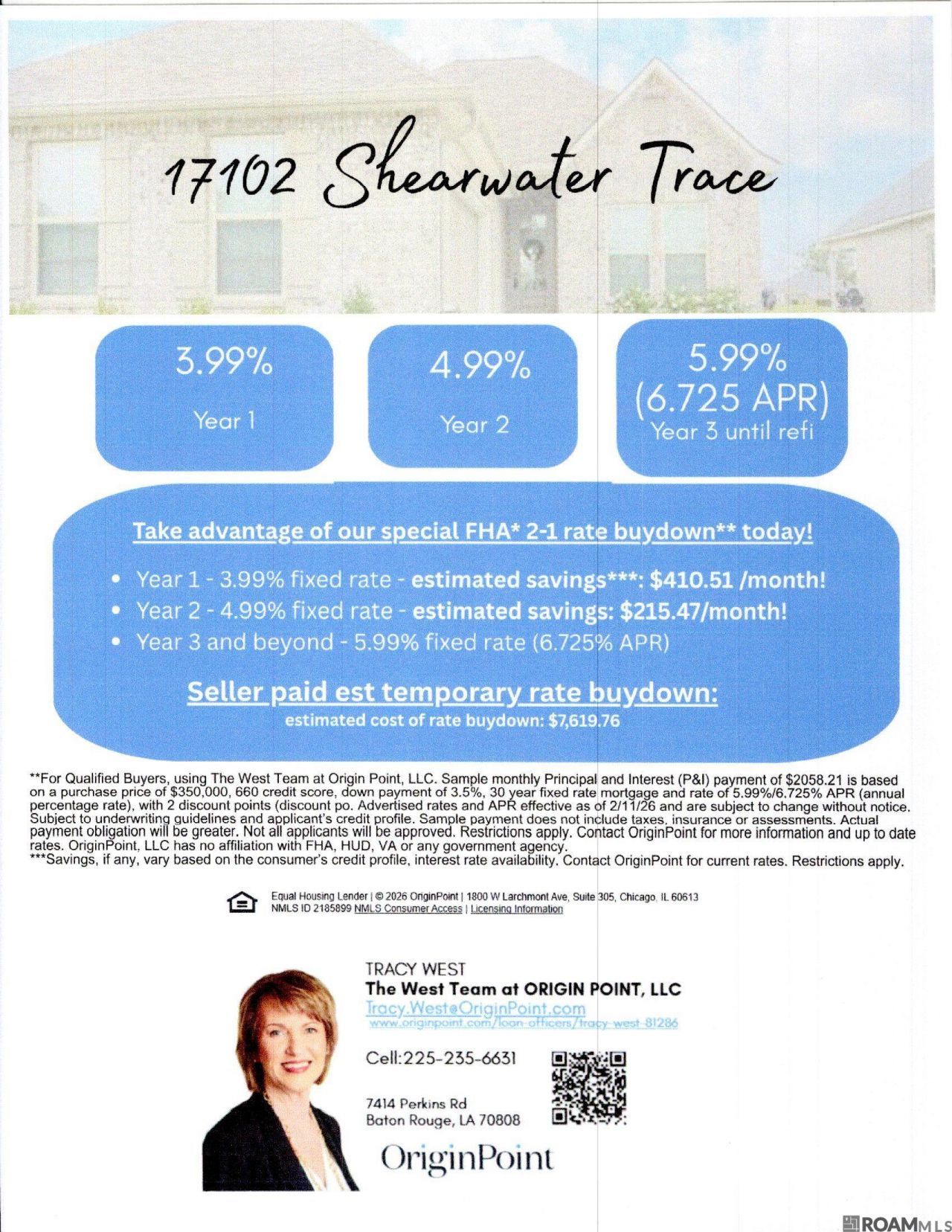 SELLER OFFERING SPECIAL FHA* 2-1 Rate Buydown**(As Low as 3.99%) SEE Flier in Photos & Documents for more details, OR Buyer can Choose to have Seller pay $7500 towards their Closing Cost. BEAUTIFUL Almost NEW Home on the LAKE with 4 Bedrooms and 3 Baths. Two Car J-Swing Garage. The Primary Bedroom has Tray Ceilings, Ceiling Fan, Bath with Large walk-in Closet, Double Vanities, Soaking Tub, Separate Walk-in Shower, & Framed Mirrors in all Baths. This home has many upgrades including Blinds, Gutters, Backsplash in Kitchen, and Luxury wood-look ceramic tile flooring in all common & wet areas, as well as Primary Bedroom, and 1 other Bedroom. Gas Stove/Range, Built-in Microwave, Granite countertops throughout, Kitchen Island with Sink, Breakfast Bar, Dishwasher, Corner Walk-in Pantry, Coffee Nook, Nice sized Dining Area, & a HUGE Laundry Room with Countertop and Cabinets for Storage. Triple Split Floor Plan, 2 Bedrooms share a bath, and 2 bedrooms each have their own private Bathrooms. Honeywell Smart Connect WIFI thermostat, Energy Efficient Features, Tankless Gas Water Heater, Low E Tilt-in Windows, and more! Call for your Appointment Today!