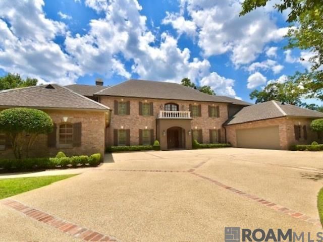 Unbelievable views! Located in the Country Club of Louisiana 11 ft above the cart path on the 14th Green over .73 acres with a 3 Acre view of the golf course. This one-of-a-kind residence, on a choice private lot, originally purchased from golf legend Jack Nicklaus, and thoughtfully designed with every detail in mind. Experience refined living in this beautifully custom-built one owner estate offering expansive interiors, timeless finishes, and exceptional amenities. Fabulous Imported slate flooring from Brazil sets a welcoming tone and flows seamlessly into the heart of the home. A spacious 800 SF kitchen and keeping area featuring hard tan brick floors, large work island, convenient butler's pantry, TV, and a Connecticut creek stone fireplace. The first-floor primary suite is a serene retreat, complete with a double-sided fireplace, marble-appointed bath, dual vanities with dressers, a heated Kohler dual bath, and a private exercise/dressing area, with half bath and private access to the back pool area. A second bedroom on the main level, currently used as an office or study, offers a brick accent wall and a full marble bath. On the second floor discover a large open hall leading to four bedrooms and three full baths, library shelving and reading area, plus a large game/playroom with a wet bar, pool table and access to the 57 foot balcony. The third level is dedicated to a fully equipped media room with a private bath and a stage. The kitchen, keeping, living room, dining room, and primary suite all have sweeping views of the golf course and wildlife preserve. The exterior of this home is equally exceptional, featuring hard tan bricks with keystones, spacious lanai overlooking the large pool and spa area, two separate double garages one fully air conditioned, a large motor court circular drive, mature landscaping, a powerful 60kW Katolight whole-house generator, and custom-crafted wood storm panels for windows and doors