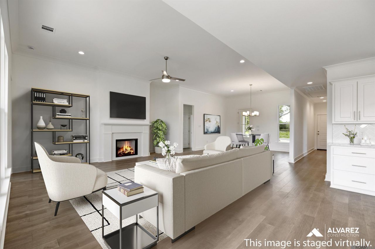 Estimated completion: complete and ready to move in Welcome to the newest addition to Zachary, LA, Cheval Trails. The Alvarez Construction exclusive community features homes ranging from 1,547 sq ft to 1,968 sq ft, perfect for any family. With these homes come many modern amenities, including a doorbell camera for added security. All homes come with a WiFi-enabled SmartHome management hub that includes 3 months of free monitoring. All homes also have a wireless smoke/heat combination detector and a WiFi-enabled thermostat with moisture controls and an advanced filtration system. With all of these smart home features, this community is sure to be the perfect place to call home. The Magnolia plan is a 4bed/3bath single-story home with open and spacious living areas and 11' high ceilings. The living room is open to the dining area with a wall of windows to the backyard. Adjacent to the kitchen with breakfast area features chef's island, WiFi smart appliances, gas cooktop, separate wall oven, and walk-in pantry. The private master bedroom has an en-suite bathroom with dual vanities, a walk-in shower, garden tub, WC, and large walk-in closet. Bedrooms 2 & 3 share a private Jack/Jill bath. Separate bedroom 4 has an adjacent bath. Stone granite counters in kitchen and all baths. LVT flooring and oversized ceramic throughout the home with carpet in the bedrooms. The home has a full-size laundry room with adjacent linen storage and a secure private entrance from the garage. Courtyard-style back porch. Owner is Louisiana Licensed Real Estate Agent.