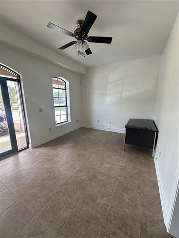 Mandeville Office/Showroom with warehouse available off Highway 59 in Alamosa Business Park. 2325 SF of office available. Rear space (528 SF) has epoxy floor and has 18W x 14H rollup door. Two of the offices are currently used for storage and are opened up to the warehouse area. These (2) 10' x 11' rooms have tile floors and can be returned to office use if needed. Kitchenette and bath downstairs with 1 current office and a large entry lobby. Upstairs has a separate office and large bullpen area with counters and plumbing. $10.00 psf plus $3.27 NNN totaling $2,571.06 per month NNN lease.