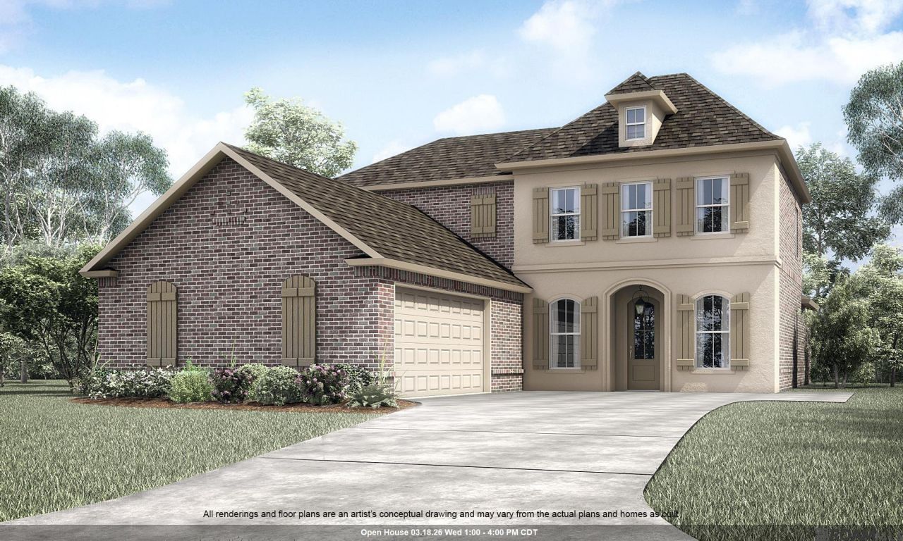 Belmont II plan by Level Homes underway in Bruce's Harbor featuring 5 bedrooms, 4 full baths and a spacious loft! Step into the foyer which opens up to the staircase leading upstairs and the large open great room. The great room is centered around a ventless gas fireplace and is open to the dining and kitchen with tons of natural lighting. The gourmet kitchen features stainless steel appliances, painted custom cabinets with 5 cabinet hardware and under cabinet lighting, 3cm Carrara Luxe quartz countertops, white subway tile backsplash, 30 stainless steel farm sink, pendant lights over the oversized island/breakfast bar, and walk-in pantry. The master bedroom is downstairs and includes a spa like bath featuring a separate 5' soaking tub and a custom tiled shower, dual sinks with 3cm quartz countertops, framed mirrors, separate water closet, and large walk around closet with custom wood shelving. Downstairs you will also find an additional bedroom and a full bath. Upstairs there is a large loft, 3 nice sized bedrooms with walk-in closets, and 2 full baths (one being a Jack and Jill). The yard will be professionally landscaped & fully sodded. Estimated completion date of May 2026, buyers can pick/approve certain colors and options for a limited period of time. Other lots/plans available. Waterfront living In Bruce's Harbor, just minutes off of I 12 at the Springfield exit and only 30 minutes from Baton rouge! Relax and unwind everyday! Water access to Blood river / Tickfaw. *The completed pictures are not of the actual home but are of the same floorplan; colors and options may vary.