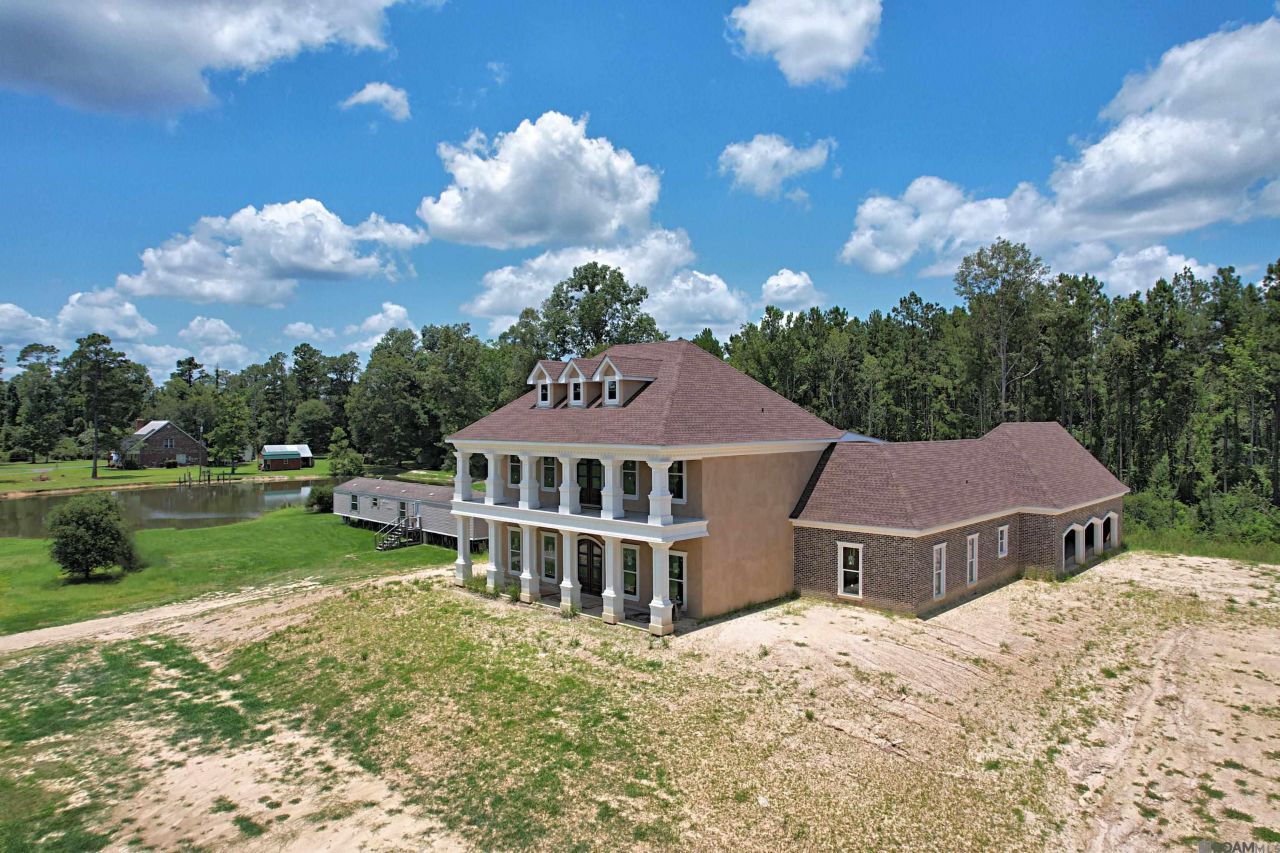 What a magnificent opportunity for you to have the home beyond your wildest dreams! This luxurious 3 story home on 3.3 acres is waiting for you to make it your own. This property is on a dead-end road with its own pond and is surrounded by the quiet and nature. Walking into this spectacular home you are greeted by a beautiful wide-open floorplan with 12 foot ceilings and 24 feet over the grand staircase. Just imagine what you can do with 4 bedrooms, an office, and your own an in-home Salon room and a theater. Both attics on the left and right side are framed and ready to become whatever you heart desires. The master bedroom has it's own private balcony on the front as well as the back of the home allowing you to feel like every day you are on vacation. Above the master on the 3rd floor, you will find a home theater room. Walk out the back door to a 688 square foot covered courtyard overlooking the perfect location for your custom dream pool. No expense was spared in the building of this home. Real stucco was used in the construction, all soffit and facia have been done in concrete board with stucco on top. The roof decking has been glued as well as nailed down and the entire roof is done in ice and water shield and then felted in synthetic felt. There are 87 piles driven to refusal under the foundation of the slab maximizing the support. This home is built to last; it's just waiting for you to make it your own. There is a 1500 square foot mobile home built in 2010 with with 3 bedrooms and 2 baths that comes with this property and is perfect to live in while you are finishing the home.