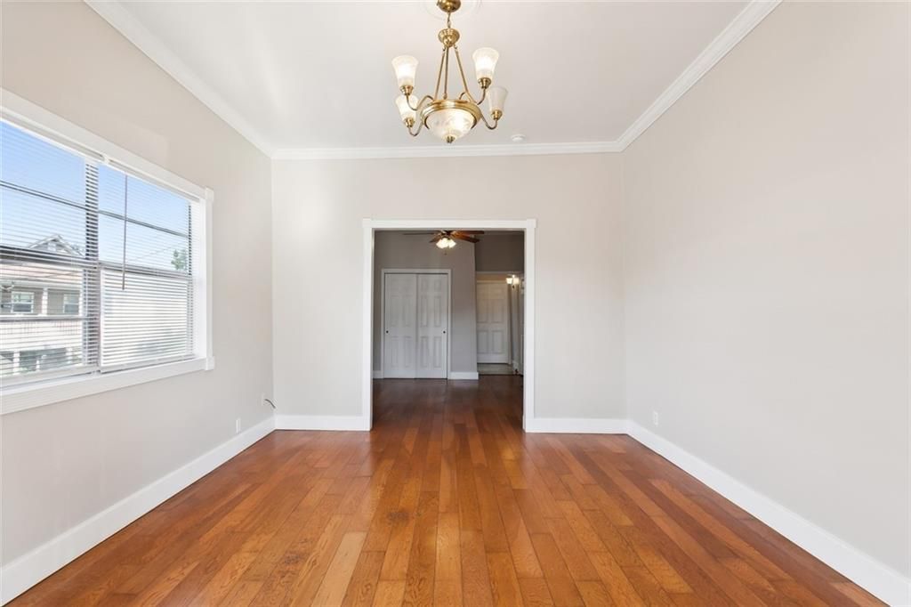 Discover the charm of this cozy 2-bedroom, 1-bathroom shotgun-style home located at 2239 Eads Street in the vibrant heart of New Orleans, LA. This beautifully updated residence blends historic architecture with modern comforts. The exterior boasts a classic New Orleans style with a welcoming front porch, to enjoy a morning coffee or chatting with neighbors. As you step inside, you're greeted by bright natural light that fills the open living and dining area, complemented by freshly painted walls and stunning hardwood floors. The kitchen is a chef's dream with sleek granite countertops, new cabinetry, and a pop of color in the custom blue cabinets, offering ample storage and a stylish cooking space. This home is located just minutes from popular landmarks such as City Park, The French Quarter, and the Fairgrounds, home to the famous New Orleans Jazz & Heritage Festival. Residents are also within easy reach of Esplanade Ridge and Bayou St. John, areas known for their picturesque beauty and walkability.