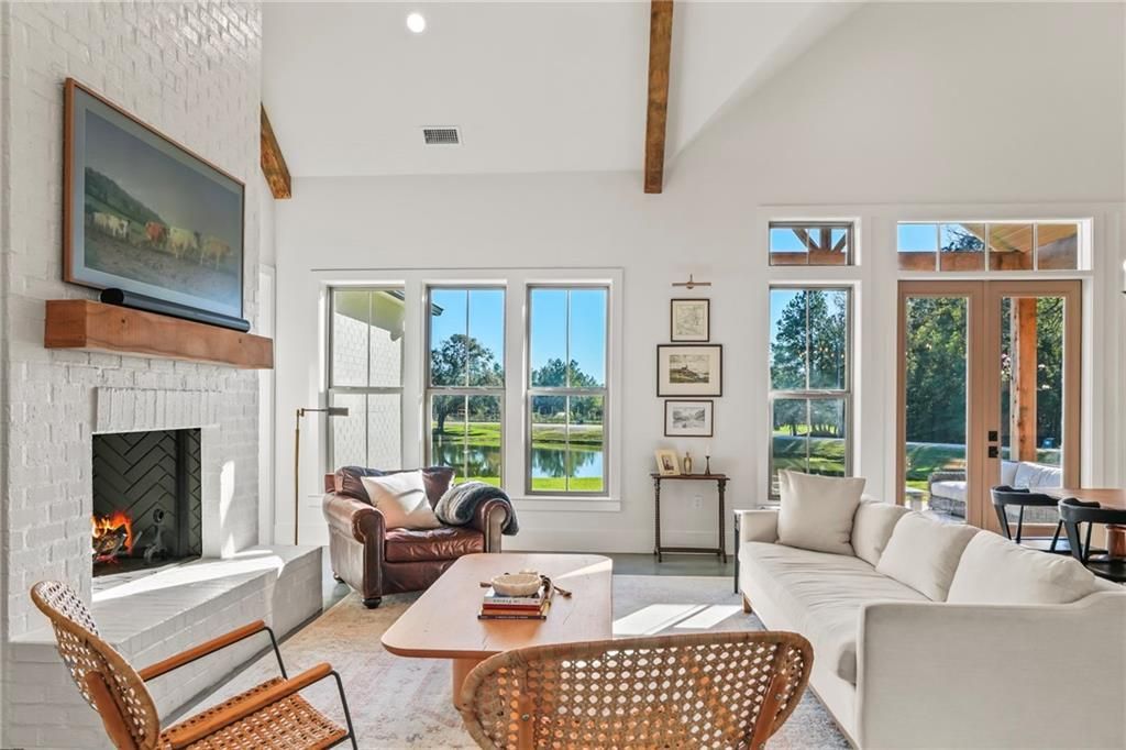 Welcome to this stunning move-in ready home, brimming with high-end features & energy-efficient upgrades! As you step inside, beautiful glass doors open to a spacious living, dining, & kitchen area. The living room boasts a warm & inviting wood fireplace with a gas starter, framed by built-in bookcases, & features a vaulted ceiling enhanced by elegant wood beams. This open space is filled with natural light, thanks to a wall of windows that offer lovely views of the surrounding landscape. The kitchen is a chef's dream, equipped with top-of-the-line appliances, including 6-burner double oven & hidden walk-in pantry. The primary bedroom is a private retreat complete with an attached spa-like bath. The primary bath showcases dual oak vanities, a luxurious soaking tub, & a stunning arched shower with multiple shower heads. Two additional bedrooms share a convenient Jack-and-Jill bathroom, while a fourth bedroom is located next to a full bathroom with a walk-in shower. On the main floor, you'll also find a walk-in laundry room with extra cabinetry for storage, & a study with built-ins overlooking the property's beautiful oak trees. Upstairs, a spacious 14x23 bonus room awaits, ready to be customized to suit your needs. Outside, relax on the covered patio, enjoy the serene views, or unwind by the firepit on the peninsula overlooking the pond. The home is equipped with a 24kw generator, a whole-house dehumidifier, two 5-stage HVAC systems, & a water filtration system for added comfort. Energy-efficient touches include foam insulation, LED lighting, modern appliances, Miele washer/dryer, & a tankless water heater. Sitting on 3.9 acres, this property feels even larger thanks to the additional community ponds & fields that you can access. It also includes a large chicken coop, adding a touch of country charm to this luxurious setting. Don't miss out on this unique opportunity to own a home that seamlessly blends luxury and comfort!