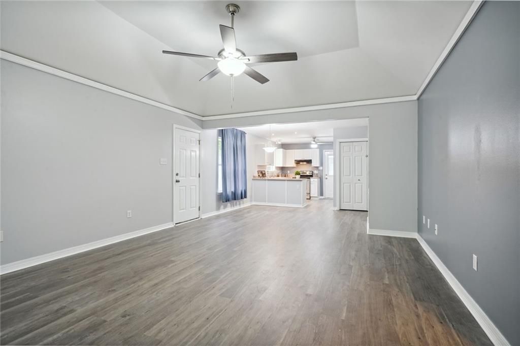 Welcome to this charming and move-in ready home offering both comfort and functionality! The attached garage features a rear roll-up door that provides convenient backyard access featuring an impressive 400 sq ft air-conditioned workshop with its own roll-up door?perfect for hobbies, storage, or projects. Enjoy outdoor living with a covered patio and porch area, complete with space to relax or entertain. Inside, you'll find a bright, open living area highlighted by a soaring vaulted ceiling that creates an inviting sense of space. The kitchen shines with crisp white cabinetry and stainless appliances. Updates include fresh interior paint, updated fixtures, stylish vinyl plank flooring, and crown molding throughout. The spacious primary suite features a beautifully updated bathroom with a granite-topped vanity and custom tile tub surround. A vaulted ceiling adds extra character to the front bedroom. This well-maintained home blends thoughtful updates with great indoor and outdoor living spaces?ready for you to enjoy! PREFERRED Flood Zone X! Flood Insurance is not required. Schedule your showing today!
