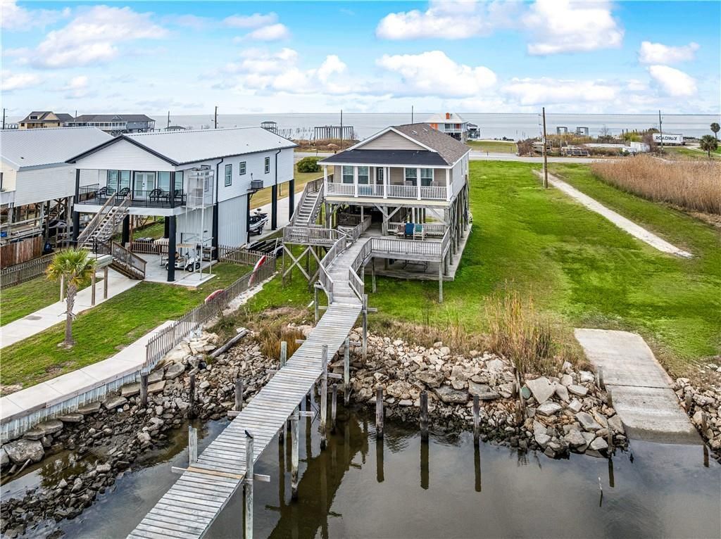 Beautiful, waterfront fishing camp in Lake Catherine area with incredible scenic views. The front porch and lower deck area offer stunning views of Lake Saint Catherine and plenty of space for all your outdoor entertainment & recreation needs! The long, built-in pier with private dock extends all the way out into the Lake providing quick access to Lake Pontchartrain, the Rigolets, and all the best this area has to offer. Inside you'll find a well-kept residence with three spacious bedrooms and two baths. This property is currently functioning as a licensed short-term rental and could be used either as a personal vacation property or income-producing rental. New roof in 2021. Just 30 minutes from downtown New Orleans. Don't miss this excellent opportunity to own a beautiful and conveniently located waterfront property! income-producing rental.