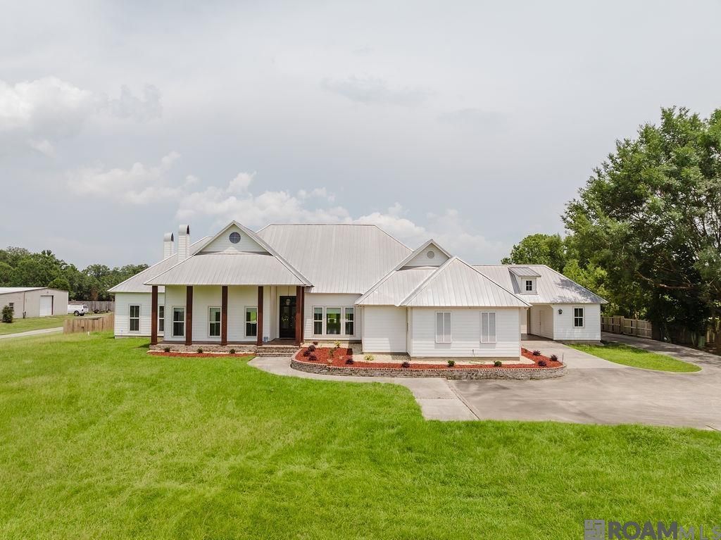 Custom Southern Estate on 3.26 Acres with Pool, Outdoor Kitchen & Room to Breathe! Welcome to your dream home! Nestled on a picturesque 3.26-acre rural tract in Denham Springs, this custom-built 6-bedroom, 5.5-bath home offers luxury, privacy, and space?all just minutes from Bass Pro Shops, Antique Village, and Juban Crossing. Step through the grand brick front porch and stunning wood-and-glass French doors into a warm and inviting open floor plan. The expansive living space features soaring ceilings, rich stained concrete floors, massive cedar beams, and a cozy wood-burning fireplace flanked by custom built-ins and oversized windows that flood the home with natural light. The heart of the home is a chef's dream kitchen?decked out with cypress cabinetry, granite countertops, a Sub-Zero refrigerator, double ovens, gas cooktop, wine cooler, ice maker, and a massive center island with prep sink and seating. The adjoining keeping room with its own fireplace and sunny breakfast nook offer perfect spaces for everyday living or entertaining. The formal dining room impresses with soaring ceilings and designer lighting, while the split floor plan provides optimal privacy. The luxurious master suite features a sitting area with backyard views, a gas fireplace, and a spa-like ensuite bath with dual vanities, a deep soaking tub, custom tile shower, and a private laundry room with built-ins just off the bathroom. Each of the remaining five bedrooms is generously sized?four include private ensuite baths and one shares a spacious Jack-and-Jill setup, perfect for guests or multi-generational living. Outside is your own personal oasis. Relax under the covered patio complete with a full outdoor kitchen, granite counters, gas grill, and plantation shutters. Step onto the open patio and enjoy sunny days by the in-ground pool surrounded by lush, professionally landscaped grounds. A 3-car garage, secondary laundry room, and hidden tech closet round out the amenities.