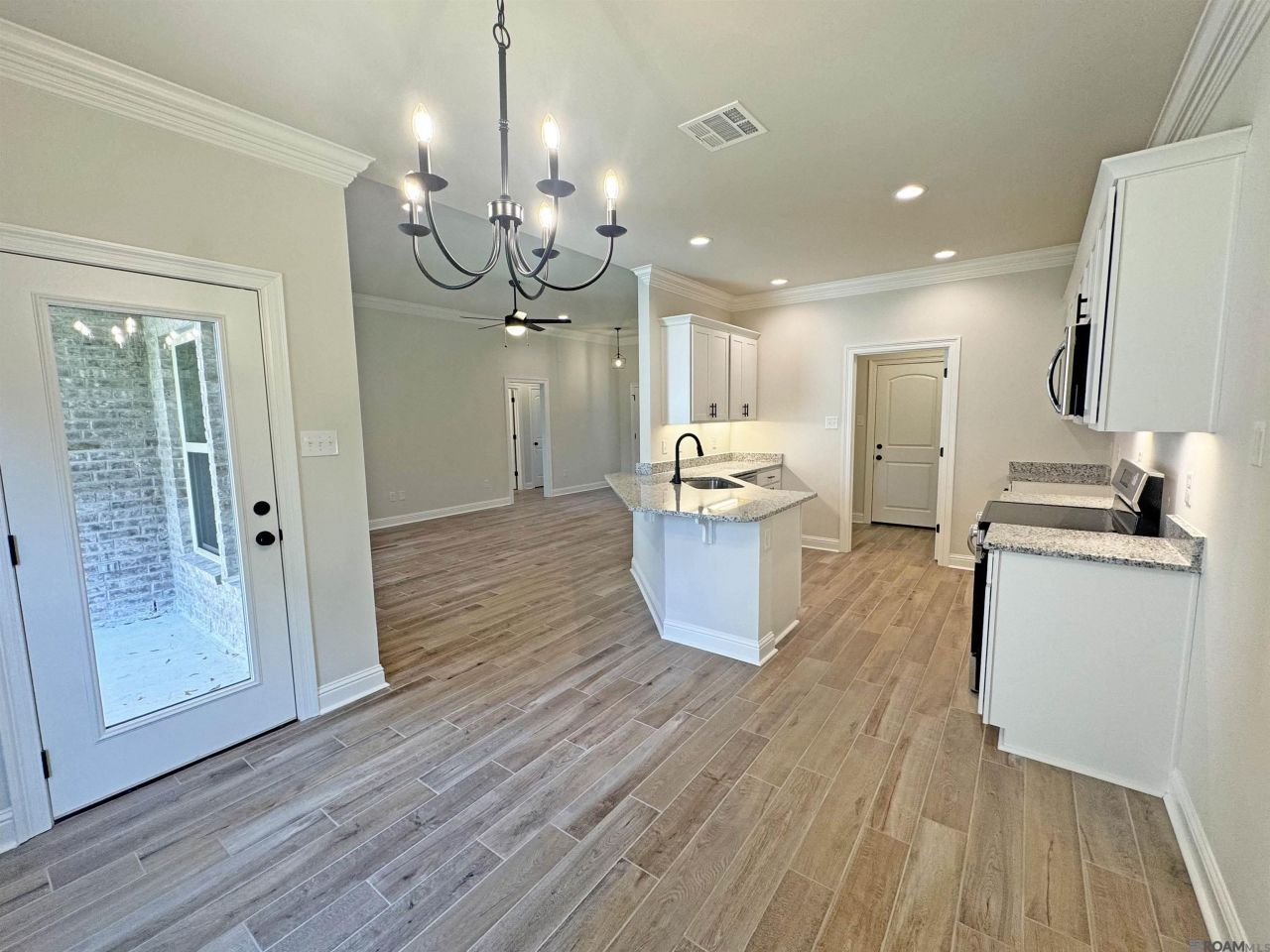 Awesome builder rate and closing cost assistance available (restrictions apply)! The PEACOCK V A in Juban Parc community offers a 3 bedroom, 2 full bathroom, open design. The community features a private pool with a pool house, a park, and pond lots. Features: garden tub, separate shower, and a large walk-in closet in the primary suite, covered rear patio, recessed can lighting, undermount sinks, cabinet hardware throughout, ceiling fans in the living room and primary bedroom are standard, smart connect wi-fi thermostat, smoke and carbon monoxide detectors, post tension slab, automatic garage door with 2 remotes, landscaping, architectural 30-year shingles, flood lights, and more! Energy Efficient Features: a kitchen appliance package, low E tilt-in windows, and more!