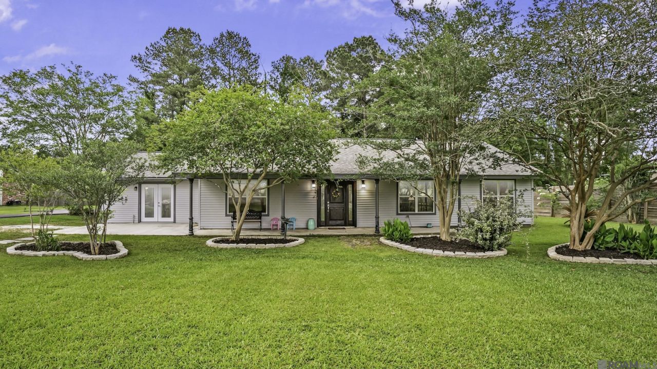 Step into a home that feels as good as it looks? updated throughout, and sitting on a full acre in one of the most desirable locations in Denham Springs. With space for everyone and style in every corner, this is the one you've been waiting for. Inside, you'll find a flowing floor plan with rich wood-look tile floors, fresh paint, and details like crown molding and custom lighting throughout. The chef's kitchen is a showstopper, complete with gray shaker cabinets, tile backsplash, stainless steel appliances, and a sleek gas range?offering both functionality and flair. Multiple living areas provide the perfect setup for both entertaining and everyday life.The sunroom with vaulted wood ceiling is a standout, perfect for morning coffee, an art studio, or your very own indoor-outdoor retreat. The main living room features beautiful built-ins and double French doors that open to a large patio and wide-open yard?great for pets, kids, or weekend BBQs. The spacious game room or potential in-law suite boasts its own cozy gas fireplace, elegant custom mantle, and private access?offering flexible living options for multigenerational families or guests. The exterior features a fresh landscaping including a newly poured asphalt driveway, a 7 year old architectural roof, along with a 3-car covered carport tucked away in the rear. The backyard has been cleared Just minutes from I-12, shopping at Juban Crossing, and right across from Greystone Country Club, this location can't be beat.