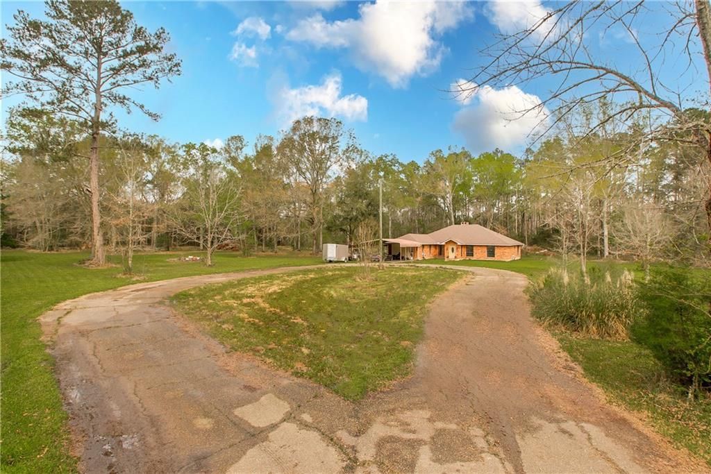 Space. Privacy. Potential. And convenience. This 2,431 square foot home offers 3 bedrooms and 2 bathrooms, plus an enclosed garage that can serve as a 4th bedroom, office, or bonus room. When you walk in, you're greeted by a beautiful fireplace and a large sunken living room that immediately creates a warm, inviting focal point. There is no carpet anywhere in the home. Vinyl plank flooring runs throughout, giving you a clean look and easy maintenance. The layout offers flexibility and room for everyone. With the right vision and updates, this property could truly shine. Situated on 5 acres at the end of a dead-end street, you get privacy and space that's hard to find. The property also features a pond that has been known to have fish ? imagine evenings by the water or teaching to cast a line in your own backyard. While the home is located in a rural setting, its close proximity to Interstate 12 means you can be in town in no time. Located in Flood Zone X, featuring a roof less than one year old, and set within a highly rated school district, this property checks the boxes for space, location, and long-term value. This home will not qualify for FHA, RD OR VA financing. Conventional, Renovation Loan, or Cash buyers only. Priced for condition and sold as-is.