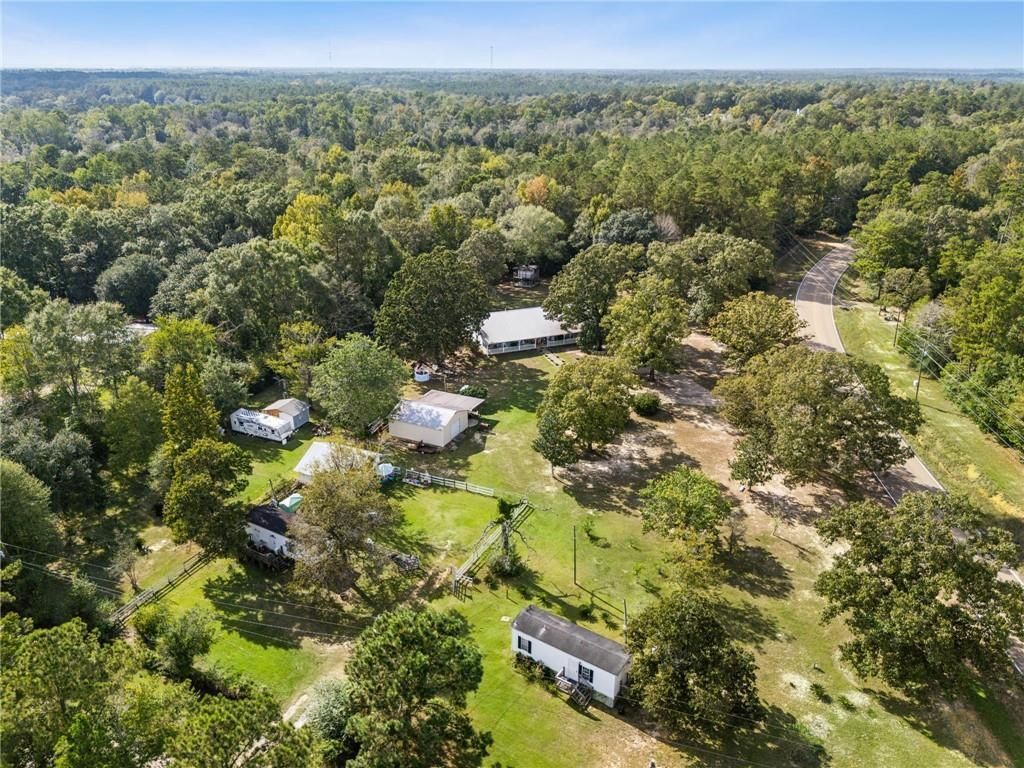 Experience the charm of country living on almost 4 acres at 26400 Hwy. 40 Bush, LA, where spacious oversized patios invite relaxation and gatherings. Enjoy additional income potential with three rental units on site or use these for a family compound. The main residence is 2400 sq. ft. with 4 bedrooms and 2 baths. There are 2 trailers each with 2 bedrooms and 1 bath, each 560 sq ft. Plus a mother-in-law house with 1 bedroom and 1 bath with a loft, 625 sq. ft. This unique property features a fully equipped workshop with electricity, great for projects or hobbies. The home offers special spaces like a cozy she shed, a man cave and even a treehouse, catering to your personal retreat needs. Living area reflects all living space on the property. Surrounded by flourishing fruit trees, this property combines comfort, functionality, and opportunity in a serene setting. There are also 2 full camper hook-ups. Embrace a lifestyle of peace and possibility in this exceptional home.