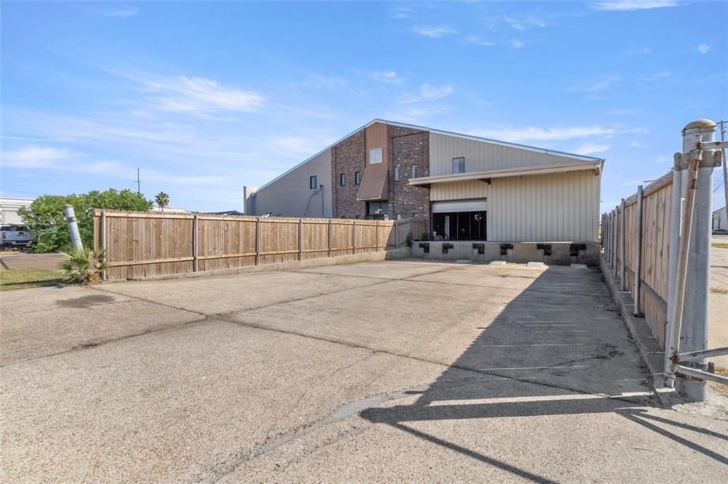 Large Office/Warehouse with loading dock for three containers, 10,000 sq. ft of warehouse space with 2 offices and two full baths downstairs .and 3840 sq. ft of office space upstairs, 10 offices, lunch room, kitchen, and conference room, 2 Full baths and 2 half baths upstairs, 10,000 sq. ft. warehouse space with high ceilings downstairs, with loading dock in front of building and side entrance to warehouse. Included with a vacant 9600 sq ft fence lot behind the building for equipment and vehicle storage. Convenient location, easy excess to interstate and MSY airport