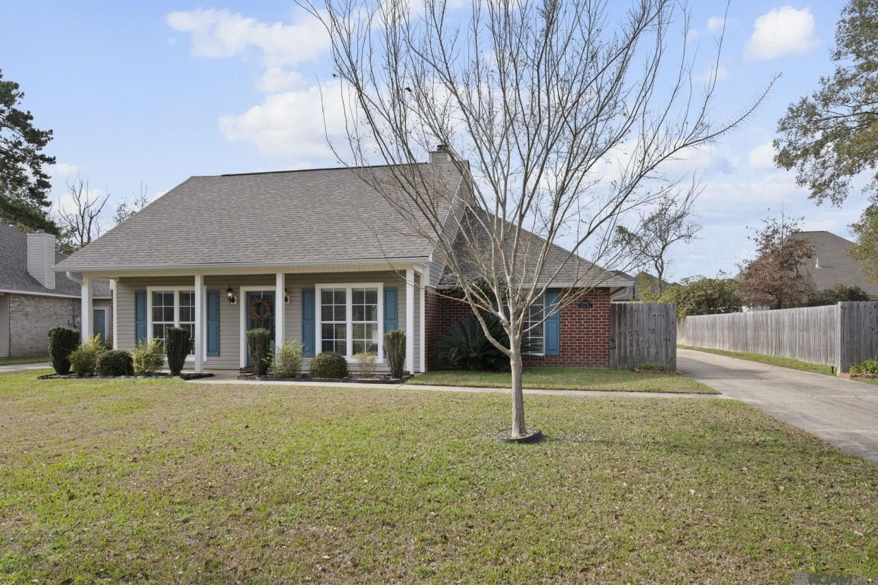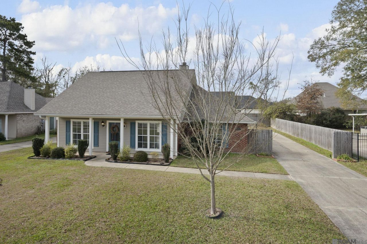 Charming Acadian-style split floor plan home located in the desirable Meadow Wood Park subdivision. This home is ideal for those seeking extra living space. Offering 3 bedrooms and 3 full bathrooms, the home provides great versatility with a dedicated office and a large second den featuring a side entrance to the driveway and French doors that open to the covered patio. Entering the front door you are welcomed by an open main floor plan with cathedral ceilings and a cozy wood-burning fireplace. The updated kitchen features white cabinetry, granite countertops, a designer tile backsplash, a corner pantry, and updated appliances. The refrigerator, washer & dryer to remain, if needed. The light and bright primary suite includes an en suite bathroom with dual vanities, extra storage, and large walk-in closets. Outside, enjoy mature landscaping, gutters, and a fully fenced backyard complete with a small storage building. Located in Flood Zone X, where flood insurance is not required. Conveniently located within the highly rated Livingston Parish School District. Schedule your showing today!