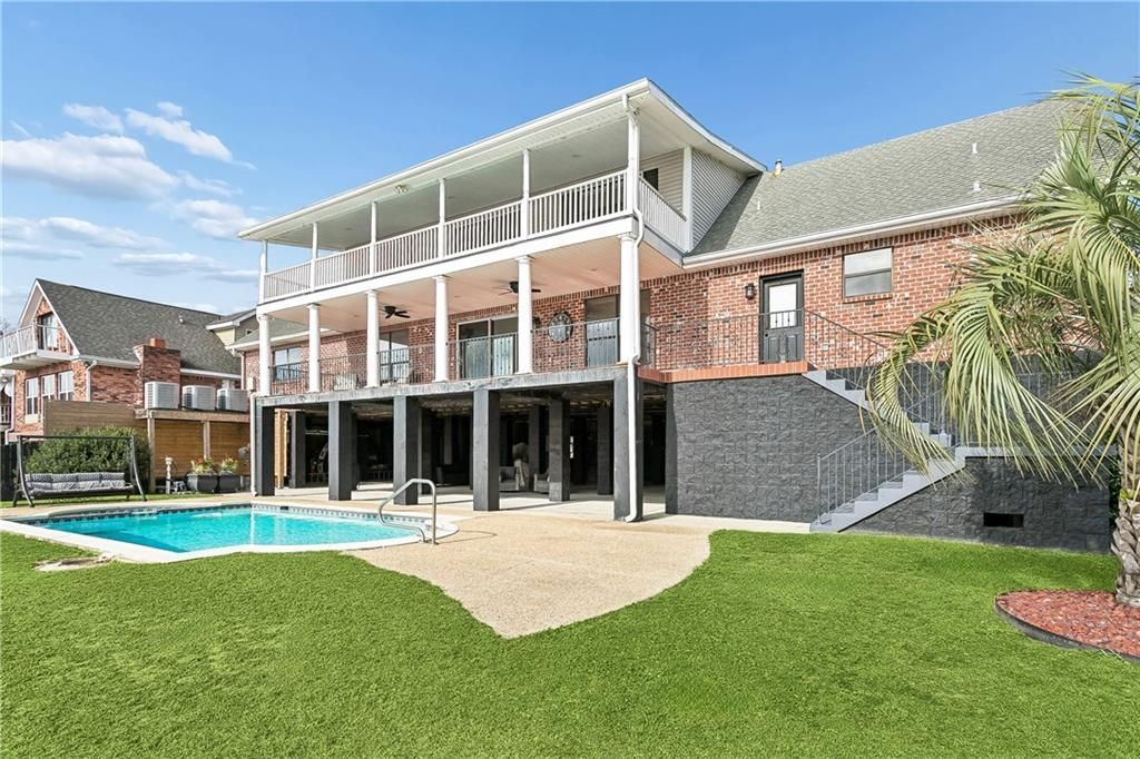 Waterfront & Elevated, traditional brick waterfront home on one of the most enviable waterfront locations anywhere. Enjoy lakeside living with a private pool on the 42-acre secluded lake with direct access to Lake Pontchartrain (and around the world for that matter) right from your own backyard. Sight see, bird watch or fish the short 15-minute boat ride through Bayou Lasseignes, Bayou Liberty, and Bayou Bonfouca leading directly to Lake Pontchartrain. It's a wonderful unique way to entertain guests and with peaceful sunsets putting a exclamation mark on every beautiful evening. Two large covered balconies overlook the water, offering regular views of ducks, wildlife, sunrises, and even the rain is an awesome experience. Features include a covered boathouse for a 27' pontoon boat plus hoist for two jet skis, covered pavilion for entertaining, bulkhead (2020), and a 24x22 bonus room ready for a media room, extra bedroom, or MIL suite with bath. Two attics provide incredible storage or expansion options. Landscaped, fully fenced yard with two driveways providing parking for 12+ vehicles. Three central AC units, termite contract, and active security camera system. Just minutes to Historic Olde Towne Slidell, restaurants, swamp tours, and I-10/I-12/I-59 access, and only 35 minutes to New Orleans. This is the pinnacle of the waterfront lifestyle on the Northshore, you can pay more for waterfront but you cannot beat the UNIQUE combination of amenities for this waterfront oasis. Don't let the sun set on this opportunity, there's not another like it. Easy appointment - Make the call.