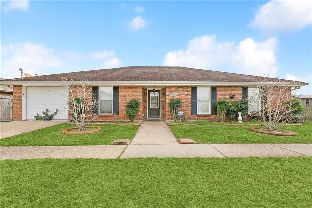 Welcome home to this charming brick 4-bedroom, 2-bath ranch located on desirable Riverland Drive in Chalmette. A covered garage and classic curb appeal set the tone as you step inside to a spacious living room anchored by a cozy fireplace? for relaxing evenings or gathering with friends and family. The open layout flows seamlessly into the kitchen, which overlooks the living area and features stainless steel appliances, granite countertops, and a convenient mini island offering extra storage and prep space. Luxury vinyl tile flooring and granite countertops continue throughout the home, providing a cohesive, modern look with easy maintenance. A dedicated laundry room with sink and abundant cabinetry adds everyday convenience and extra storage. Out back, enjoy year-round entertaining in the large brick screened-in patio complete with ceiling fans and overhead lighting, all overlooking a fully fenced backyard. The yard offers plenty of green space for gardening, play, or pets, plus a large shed for tools, hobbies, or additional storage. Located in a quiet, established neighborhood with easy access to schools, shopping, dining, and a quick commute to New Orleans, this home offers comfort, functionality, and value in the heart of St. Bernard. Extra Lot included!