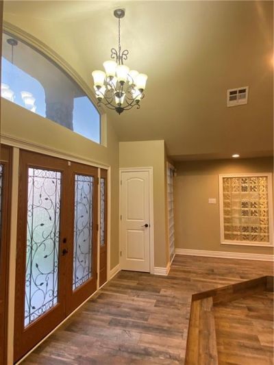 Welcome! Welcome! Step inside to a custom-built 3 bedroom, 2.5-bathroom open floor plan home. This house is very inviting with warm colors. Great for entertaining. Upon entering, you enter a sunken living room with a double fireplace that can be observed from both living room and den. Lots of recess lighting. Beautiful kitchen, stainless steel appliances with lots of cabinets. No carpet, beautiful wood floors throughout the house. Extra closets in foyers and hallways. Inside laundry room. Covered patio for entertaining or just relaxing. This home is a must see!! Don't miss the opportunity to make this spacious house your home. This home was recently treated for termites.