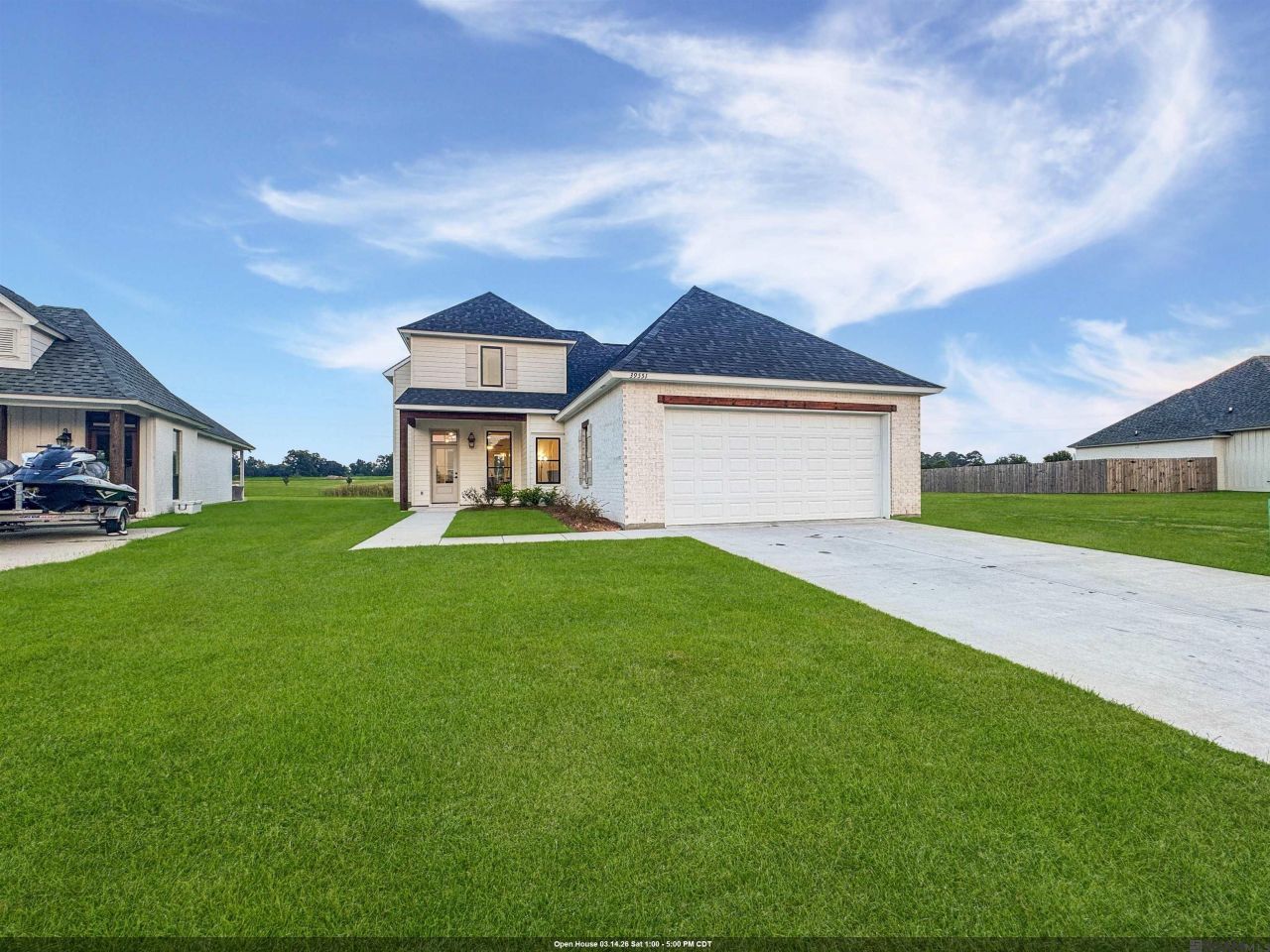 Open House -Friday-Sunday, 1-5 pm. PRICE REDUCED!! MOTIVATED SELLER!! Welcome to this incredible new construction home in the sought-after Riverton Subdivision! Thoughtfully designed by Trinity Construction Group, this 4-bedroom, 3-bath beauty also features a dedicated office and an upstairs media room?offering the perfect blend of luxury, function, and space. The wide open split floorplan showcases custom finishes at every turn, including tall ceilings, elegant crown molding, and quartz countertops. The kitchen is a true centerpiece with custom cabinets to the ceiling, under-cabinet lighting, a walk-in pantry, designer backsplash, oversized island, and premium stainless steel appliances including a 5-burner gas cooktop, wall oven, and built-in microwave. The living room adds a touch of sophistication with a custom built-in wet bar featuring designer finishes. The private primary suite is a luxurious retreat with *two* spacious walk-in closets, an oversized custom-tiled shower, freestanding soaking tub, dual vanities, and a private water closet. Downstairs also includes a second bedroom, full bath with custom tile surround, and a stylish home office. Upstairs, you'll find two additional bedrooms, a third full bath, and a large media room?perfect for movie nights or entertaining. Step outside to your oversized rear porch, complete with an outdoor kitchen, tongue-and-groove ceiling, and cozy fireplace?ideal for year-round enjoyment. As always, Trinity homes are built with no carpet, featuring luxury vinyl plank flooring throughout, radiant barrier roof decking, energy-efficient windows and HVAC, tankless water heaters, and upgraded attic insulation for maximum comfort and efficiency. $4000 in Seller Paid Closing Costs when financing is with Blake Maggio with GMFS in Prairieville.